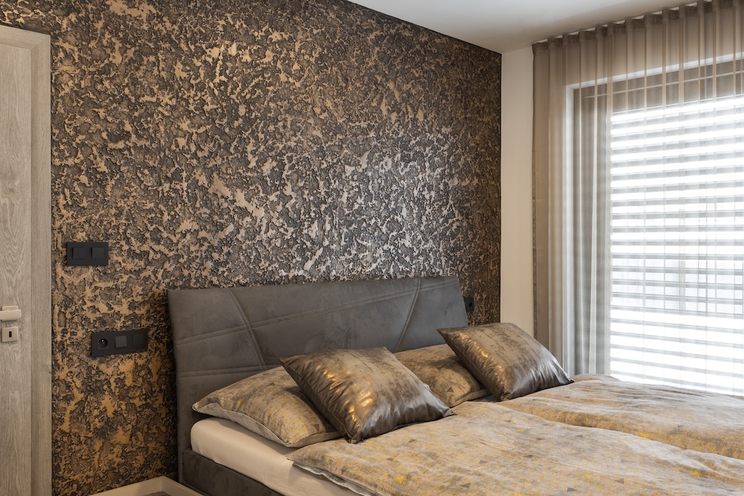 Pokud preferujete jemnější strukturu, stěrka Pitted vás okouzlí. Přestože je stále výrazná, na dotek je překvapivě hladká. Její elegantní vzhled se hodí do obývacích pokojů i ložnic.