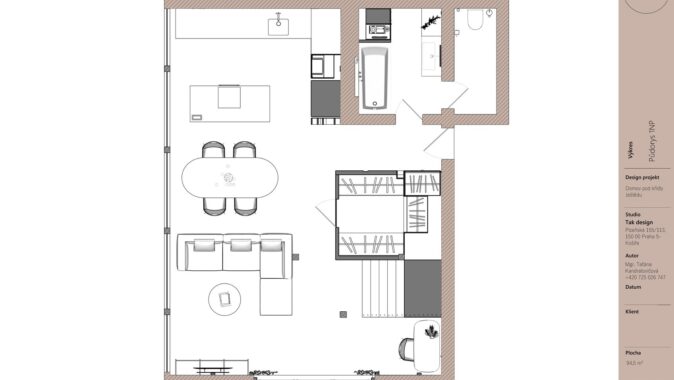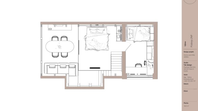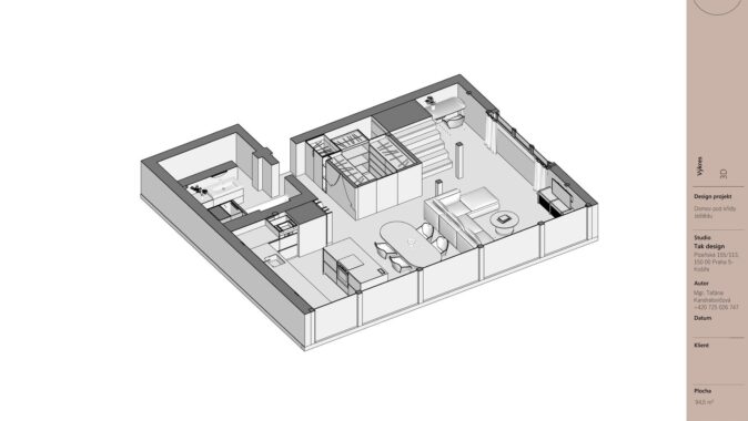 Když jsem začínala pracovat na tomto projektu, věděla jsem, že chci vytvořit interiér, který nebude jen krásný, ale bude mít i hlubší propojení s místem, kde se nachází. Hora Ještěd se stala nejen inspirací, ale i symbolickým prvkem, který se promítá do celého prostoru. Mezonetový byt je součástí moderní roubenky a jeho koncepce spočívá v harmonii tradičních materiálů a moderního designu.
