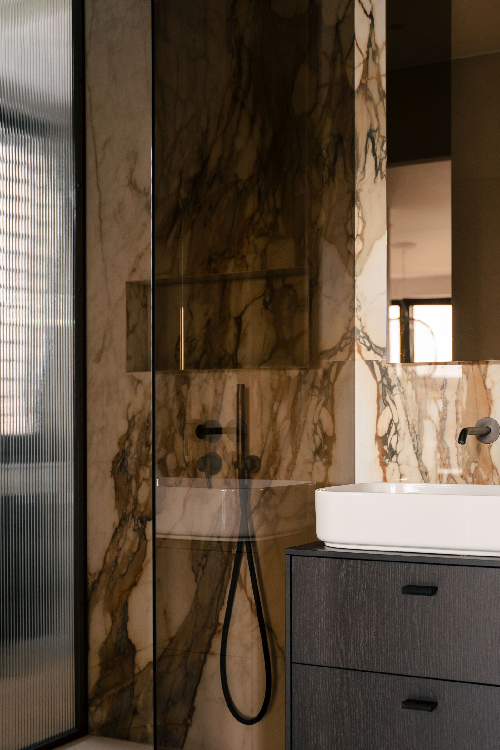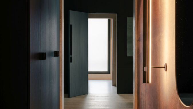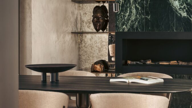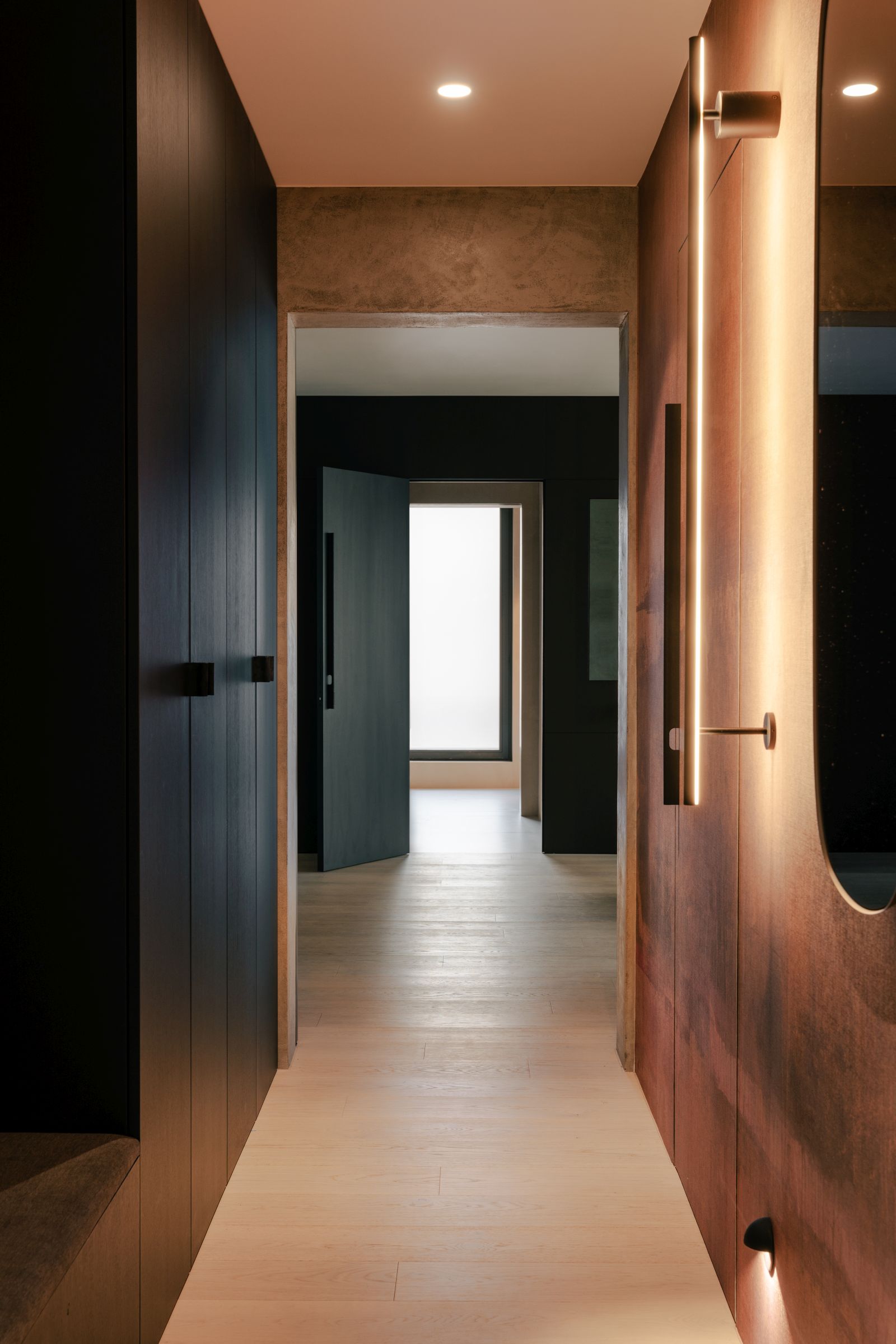 Oba interiéry spojuje práce s přírodními materiály — kamenem, dřevem, sklem a kovem — i důraz na detail a technickou koordinaci vestavěných prvků. Společným prvkem je rovněž inteligentní systém řízení domácnosti integrující stínění, osvětlení a klimatizaci. Přesto každý z bytů zachovává vlastní identitu: jeden je výraznější a kontrastní, druhý umírněný a klidný.