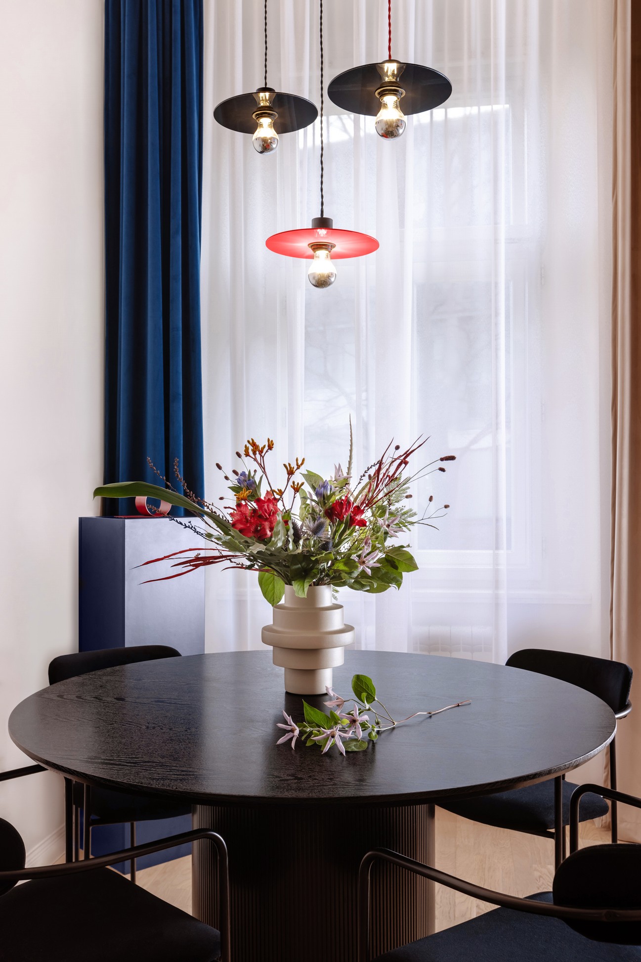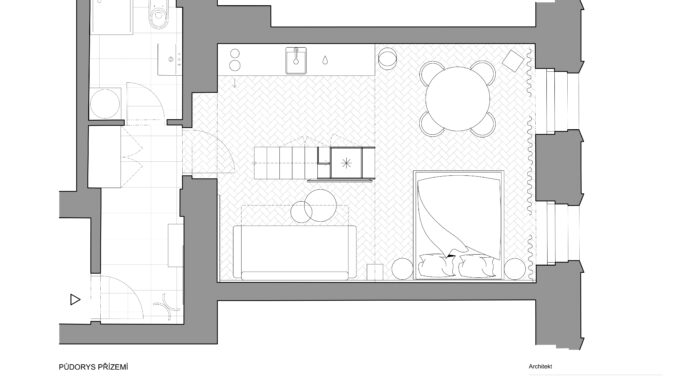 Interiér bytu v centru Prahy je projektem studia TurnKey, který spojuje minulost s moderním designem. Díky odhalení původního štukového stropu, který byl zakrytý sádrokartonem, došlo k zachování historického charakteru prostoru.