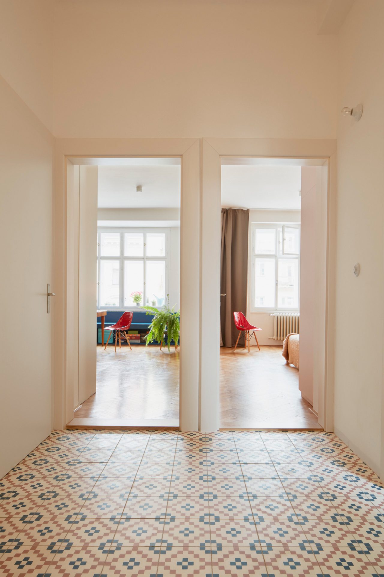 Byt v historickém činžovním domě z počátku 20. století v oblíbené pražské čtvrti prošel rekonstrukcí podle 0,5 Studia. Zadáním byla kompletní rekonstrukce bytu o ploše 77 m².
