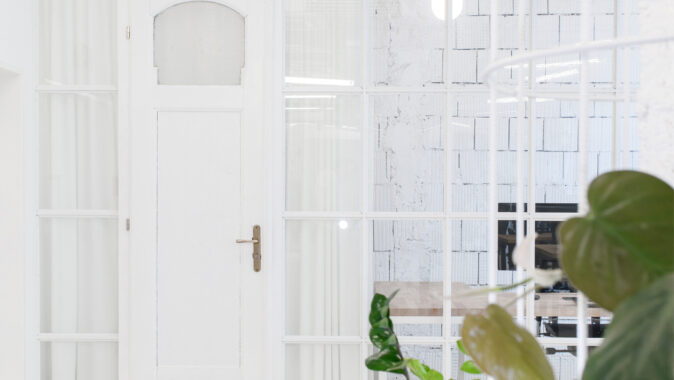 Stěny oblých mini zasedaček jsou obloženy polštáři vytvářejícími vhodné akustické podmínky pro práci. Vizuálním průvodcem interiéru je bílá barva sjednocující přiznané surové struktury materiálů, ať už zděné stěny, požární nástřiky či rozvody technologií. Celým interiérem prorůstá zeleň a bílý prostor postupně ovládá, symbolizuje dynamiku firmy a přirozený růst.