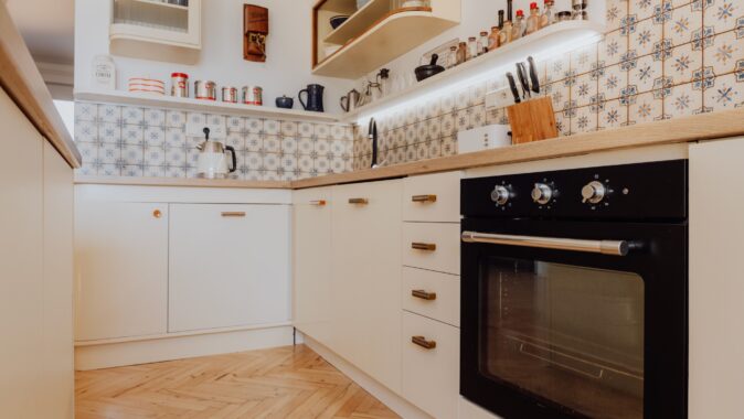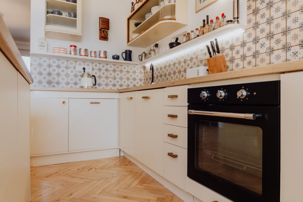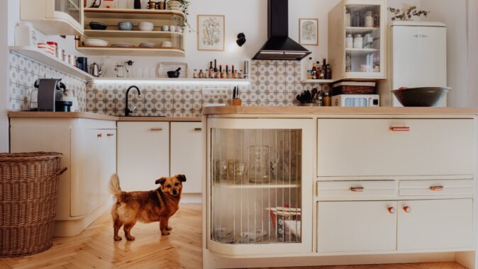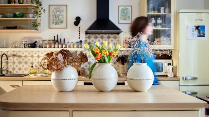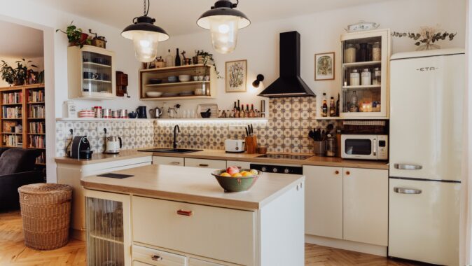 Ve třech pokojích se zachovaly parketové podlahy a dřevěné zárubně dveří, které se brousily a lakovaly. Probouráním zdi mezi dvěma pokoji vznikl obytný prostor s kuchyní. Kuchyň se propojila se zahradou francouzským oknem a stala se královnou prostoru. Mám velkou slabost pro staré věci, ráda je propojuji s novými a vždycky jsem toužila po staré chalupě, což Karel opravdu není.