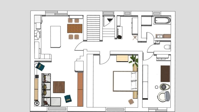Aby byla očekávání od projektu naplněna, bylo nutné učinit rozhodnutí o nové dispozici a konceptu celého interiéru. Jedním z požadavků bylo uspořádat přízemí tak, abychom ve starším věku nemuseli do patra. Mým přáním byla atypická kuchyně. Karlovi jsem nechtěla dělat žádné zbytečné násilí, za které by mi pak házel klacky pod nohy. Nechala jsem se jím vést a k zásahům přistupovala velmi citlivě.