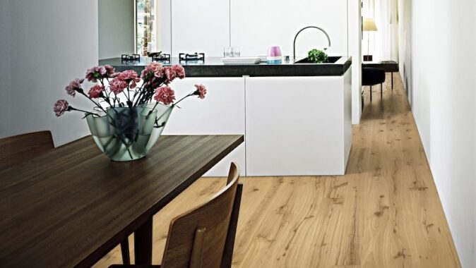 Třívrstvé dřevěné krytiny rustikálních kolekcí Kährs Alpin a Texture Collection zahrnují po třech barevně shodných dubových dekorech v přírodním oleji: Přírodní dub s přirozeně medovým odstínem a kaštanově hnědou strukturou dřeva (Dub Nature), velmi lehce mořený povrch do světle hnědého tónu (Dub Rohoptic ) a tmavší blond odstín doplněný teplými šedými tóny (Dub White).
