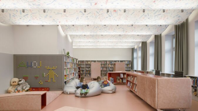 Rekonstrukce Knihovny Břetislava Kafky proměnila interiér historického domu bývalého hostince v prostor pro knihovnické a komunitní aktivity. Návrh studia PAPUNDEKL ARCHITEKTI pracuje s původní architekturou a doplňuje ji výrazným mobiliářem a barevným řešením.