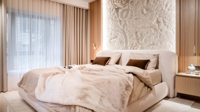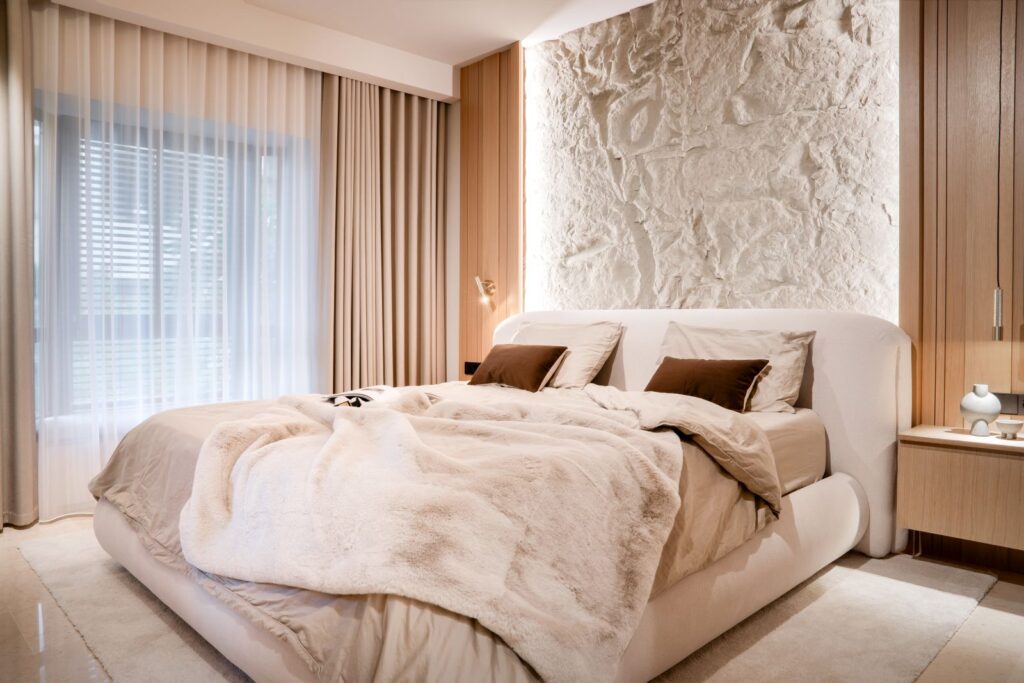Majitelka jednoho z bytů nepravidelného členitého půdorysu zvažovala rekonstrukci, přičemž její představou byl kompletní re-design interiéru s důrazem na minimalismus v kombinaci s přírodními prvky, texturami a materiály. A s tímto zadáním se obrátila na architektonické studio Design & Emotions. Došlo i k úpravám dispozic a propojení kuchyně a obývacího pokoje.