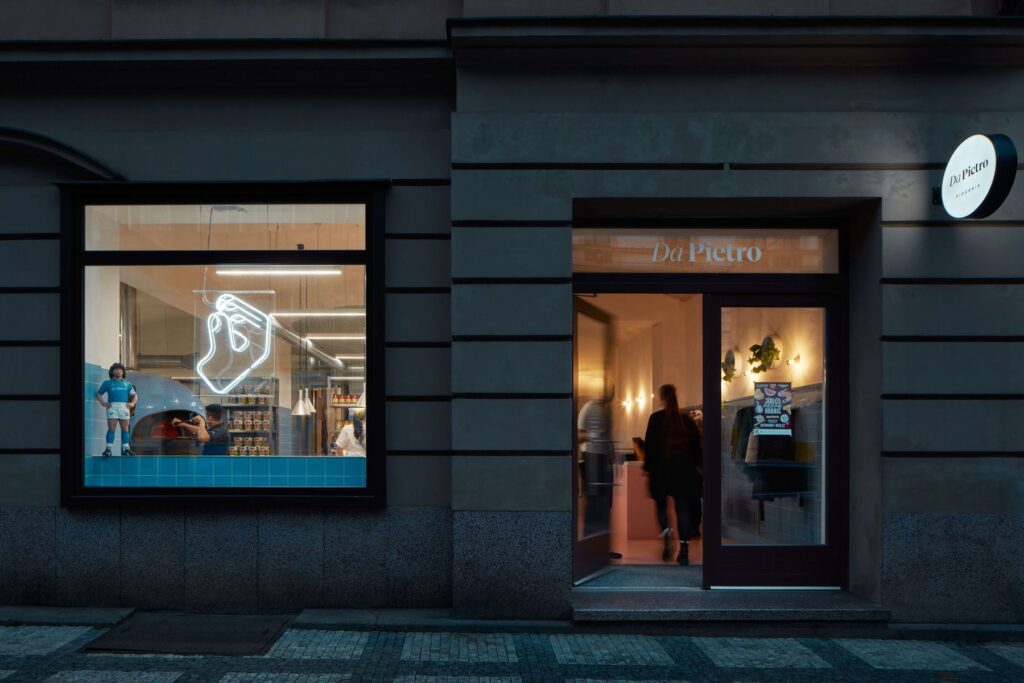 O plzeňské pizzerii Da Pietro se říkalo, má nejlepší neapolskou pizzu a otevření pobočky na pražských Vinohradech podle návrhu studia Neuhäusl Hunal bylo logickým krokem. Stavební program definovaly dva na míru vyrobené základní kameny: pec na pizzu italského mistra pecaře a socha Diega Maradony v neapolském dresu.