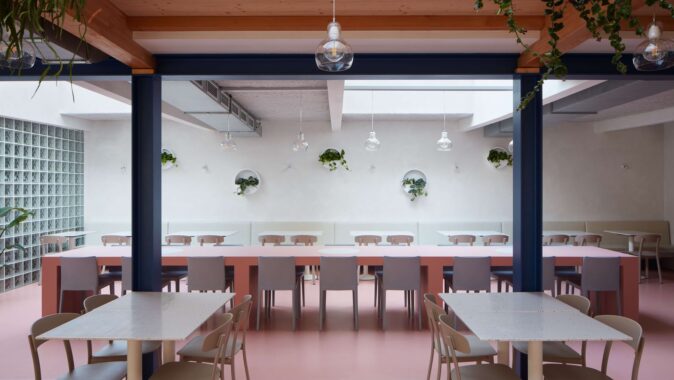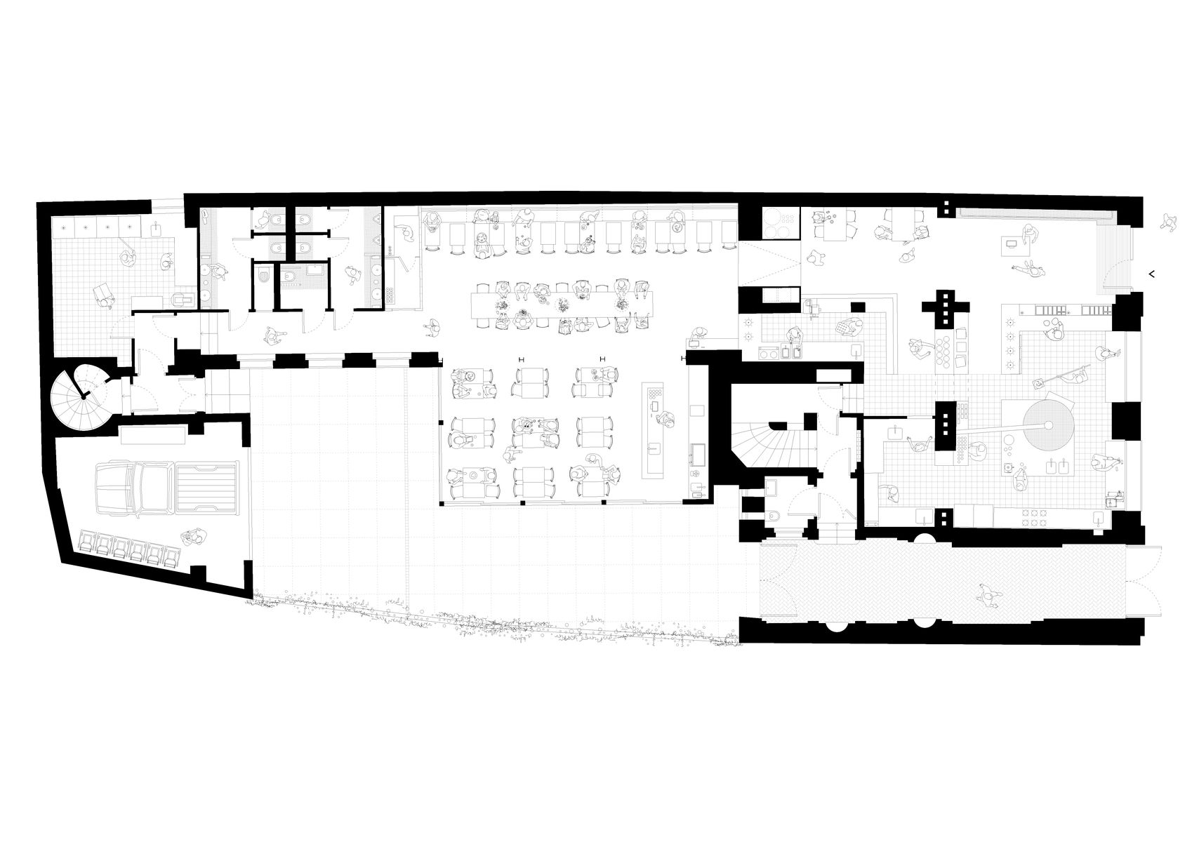 Klíčovým benefitem prostoru je množství zdrojů přirozeného světla, které přichází původními i novými světlíky, okny a dřevěnou přístavbou do dvora, a vytváří přes den nezaměnitelnou atmosféru. Večerní atmosféru dokreslují teplé umělé osvětlení v podobě žárovek.