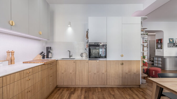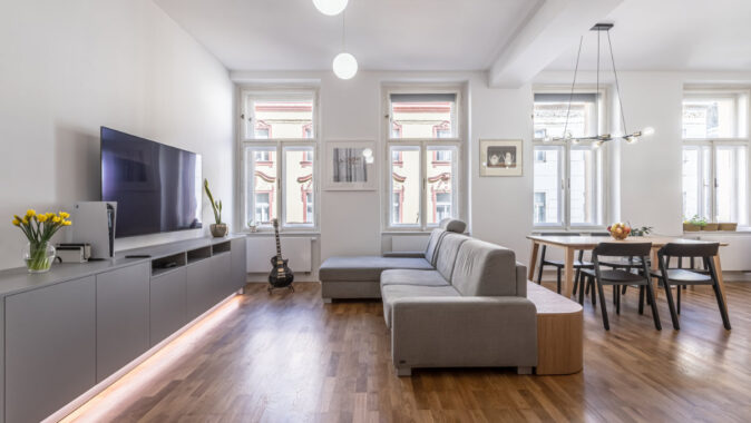 Zadání od klienta bylo jasné – byt by měl spojovat a ne rozdělovat a přesně to dělá. Hlavní roli hrají světlé barvy, dřevo a detaily, které dodávají teplo a osobitost. Domov, který žije s lidmi se stal skutečností. Každý detail tu má svůj smysl – žádná zbytečnost, žádná efektní gesta.