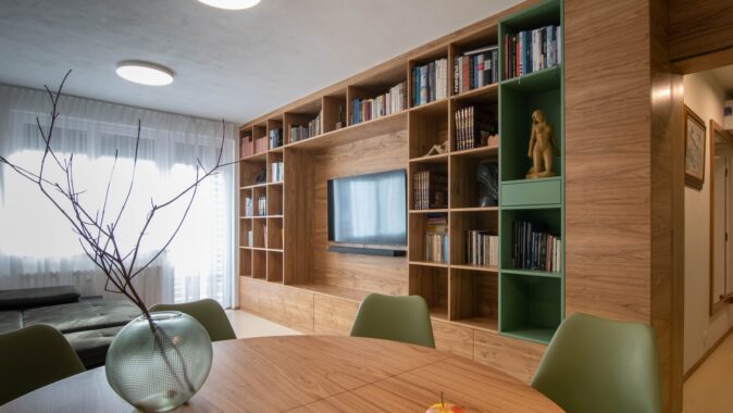 Na začátku byl byt v panelovém domě s původním umakartovým jádrem, kuchyňskou linkou v chodbičce a třemi pokoji. Zadáním pro studio +arch bylo přizpůsobit dispozici a design pohodlnému a praktickému užívání šestičlenné rodiny s důrazem na nadčasový vzhled a estetiku.