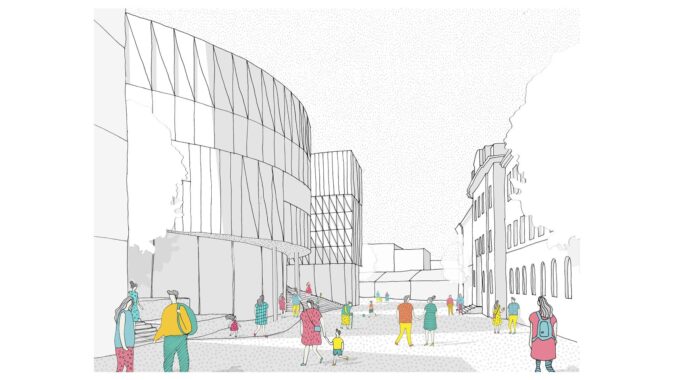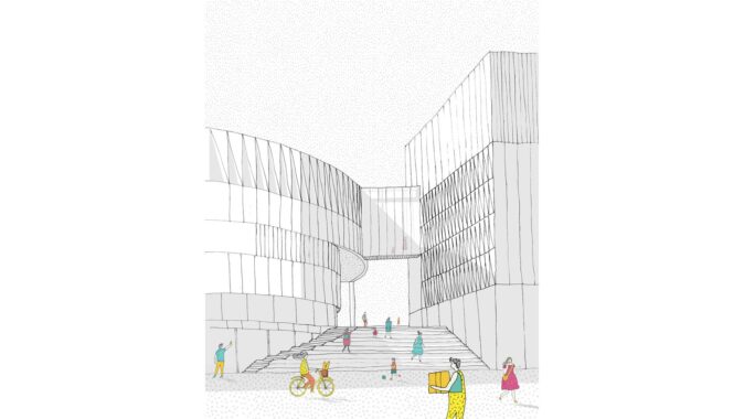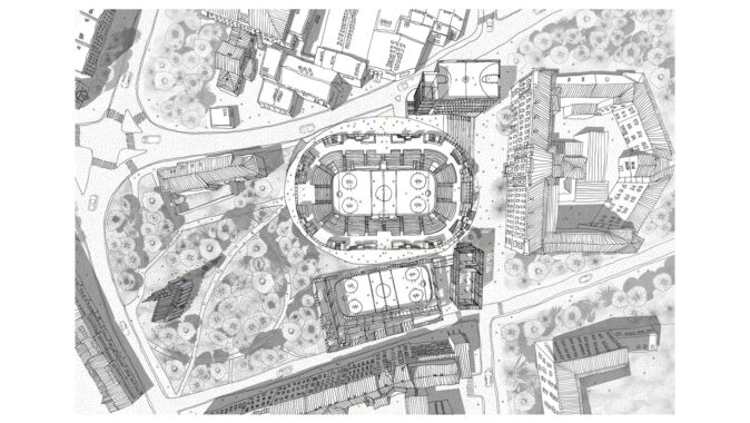 Koncept arény staví na myšlence živé městské struktury – nikoli uzavřené haly, ale otevřené a přirozené součásti města. Vznikl tak propojený kampus. Rozšiřuje veřejný prostor, otevírá přízemí veřejnosti a podporuje prostupnost mezi ulicí Tolstého s univerzitou, parkem Smetanovy sady a okolními ulicemi. Tím vytváří otevřený komplex, který historické centrum doplňuje a rozšiřuje, aniž by s ním soupeřil. Další výhodou umístění je odlehčení automobilové dopravě, neboť během pěti až deseti minut může návštěvník dojít na autobusové i vlakové nádraží.