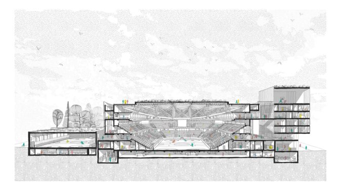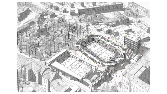 Od začátku byla součástí návrhu energetická efektivita — od přirozeného větrání, přes optimalizaci denního světla až po využití odpadního tepla z ledové plochy. Každý prvek vyvažuje technickou funkci a architektonický výraz, aby aréna sloužila sportovcům, návštěvníkům i kolemjdoucím. Rozdělení funkcí arény mezi dva nové objemy — hlavní halu a nárožní budovu — bylo klíčové k tomu, aby stavba žila i mimo zápasy. Hlavní podlaží arény zůstává vizuálně propojeno s okolím díky prosklenému parteru, zatímco nárožní budova s rovněž prosklenou restaurací a fanshopem, ubytováním, posilovnou a tělocvičnou zajišťuje každodenní provoz.