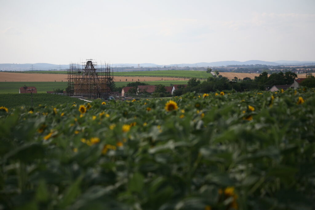 Centrální kruhová stavba kaple v Nesvačilce od autorů Jana Říčného a Filipa Koska (RCNKSK) je vyrobena z ručně tesaných jedlových trámů a lamelové CNC obráběné konstrukce, obložena modřínovým dřevem. Konstrukčně je inspirována středověkými stavebními postupy, které se zde potkávají se současnými technologickými možnostmi díky statikovi Vítu Mlázovskému.