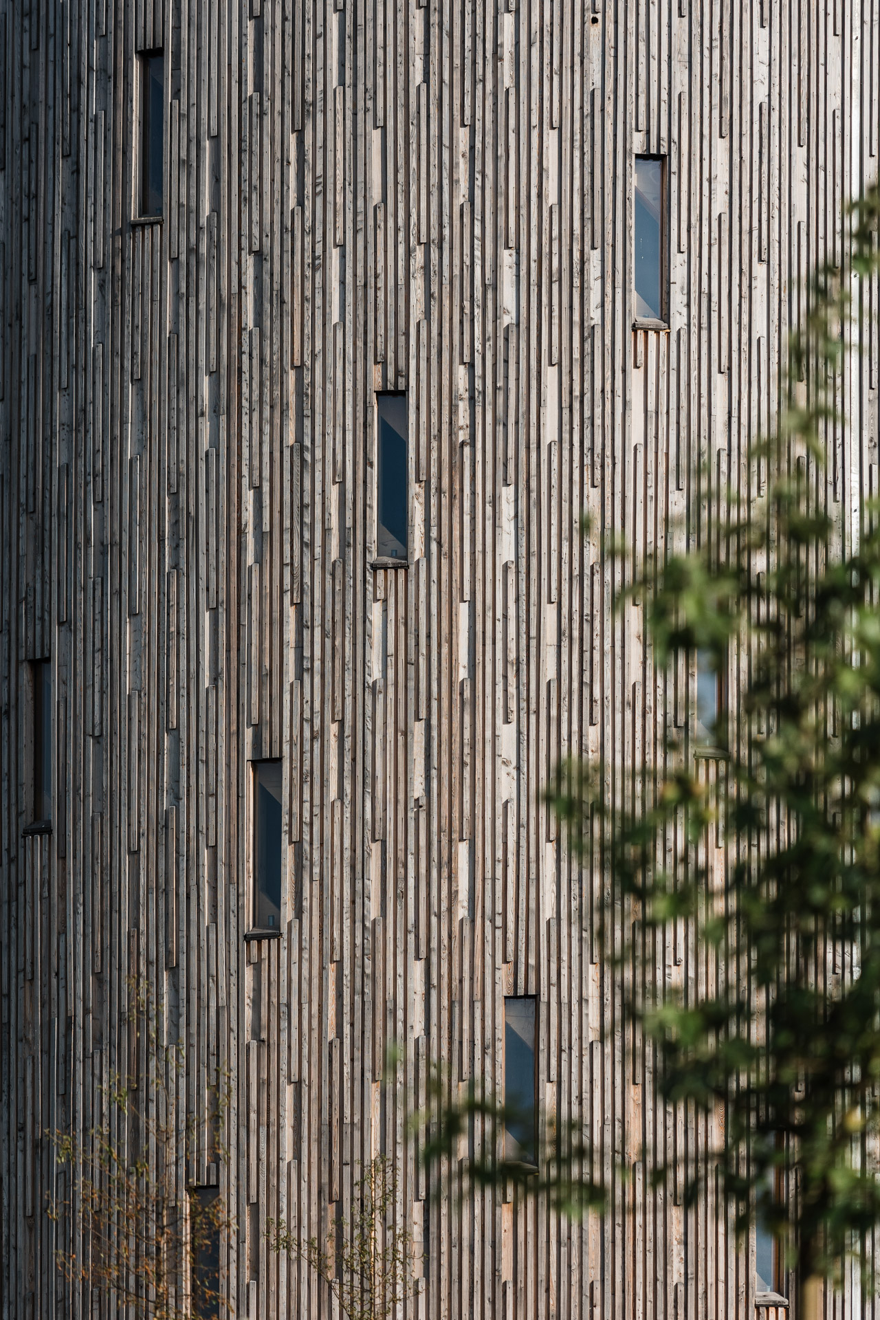 Celý prostor nad kameny je obalen lehce působícím závojem Mariiných slz tvořených jemnými vertikálními okny a dřevěným obkladem. Můžeme tedy rozdělení prostoru chápat jako část pozemskou (kamennou) a nebeskou (dřevěnou). Což platí i v exteriéru, kde dřevěná část je tvořena cedrovým lepeným obkladem, který zesvětlá do stříbřitého odstínu a bude působit velmi lehce a nehmotně. Kruhová podstata interiéru je akcentována uspořádáním lavic. Obemykají kněžiště, přibližují věřící obřadu a vytváří společenství.