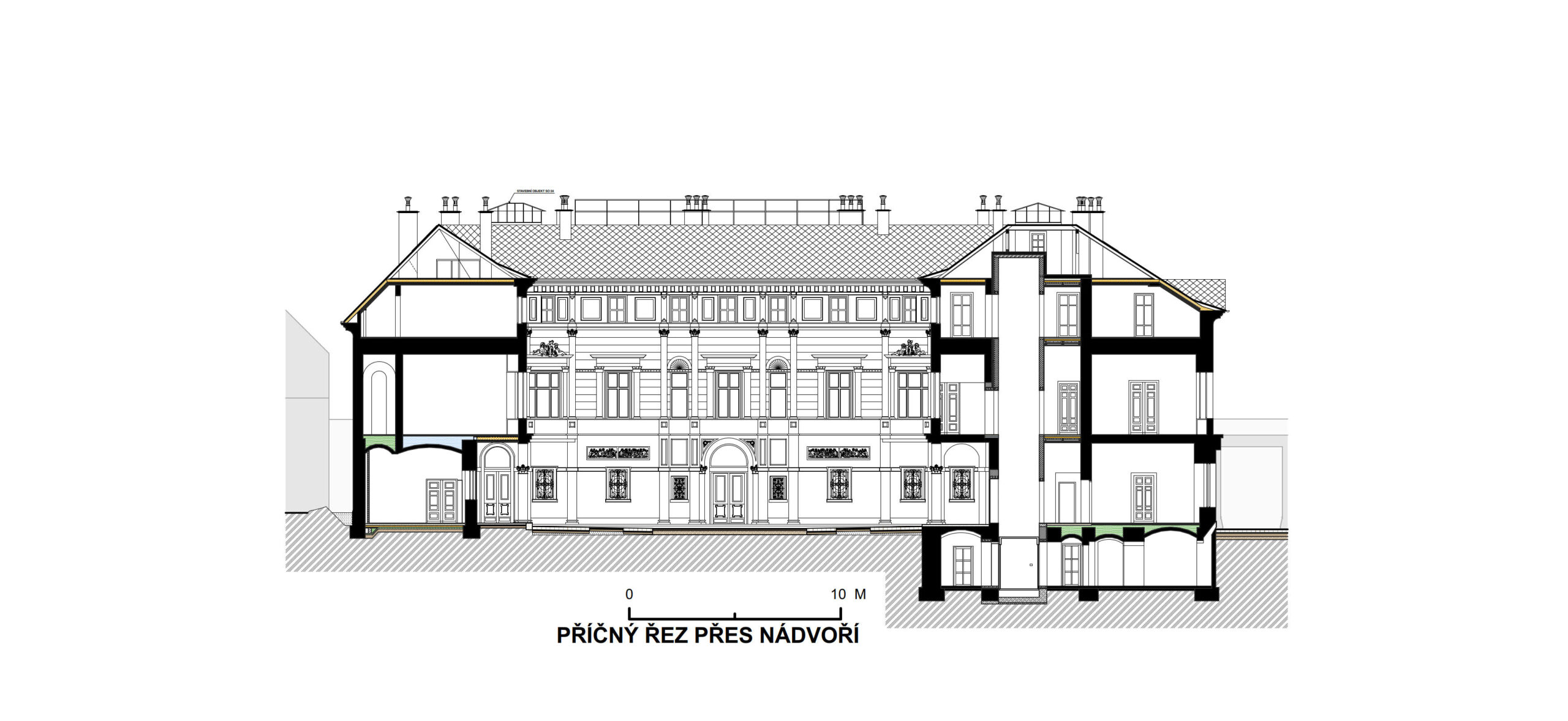 Stavební program se kromě s investorskými a památkovými požadavky musel vypořádat s potřebnými parametry pro získání dotace. To obnášelo centrální bezbariérový vstup s kontrolou pohybu, bezbariérové řešení včetně výtahů a sociální zařízení v dostatečném počtu. Areál po komplexní památkové obnově nabízí veřejnosti multifunkční společenský sál s kapacitou 50 osob, kavárnu se vstupem na terasu, výstavní prostory, spolkové místnosti a klubovny, počítačovou učebnu, výtvarný ateliér, dětský koutek se zázemím, tělocvičny a zpřístupněnou zahradu.