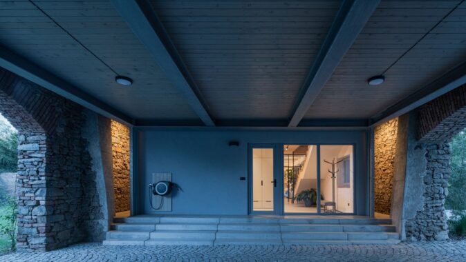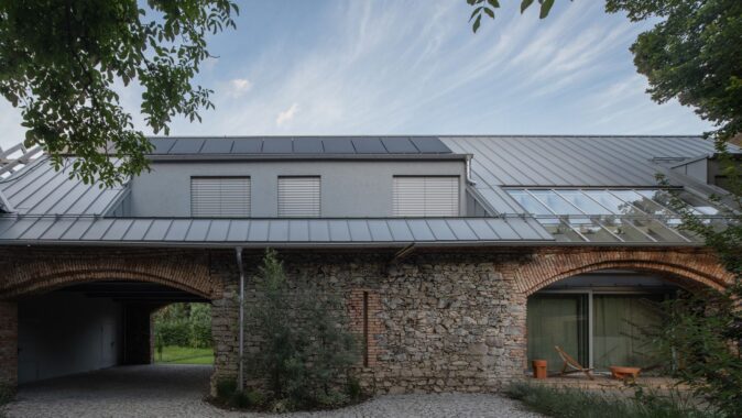 Co se zapomenutou stodolou a jejími vzpomínkami? Strhnout a stavět znovu? Rekonstruovat po předchozích zkušenostech investoři nechtěli. Pak ale nahlédli dovnitř a hned věděli, jak s ní s pomocí studia Karnet naloží – postaví v ní nový dům. Kamenné torzo zůstalo, konstrukce byla stabilizována a dovnitř vložili dřevostavbu.