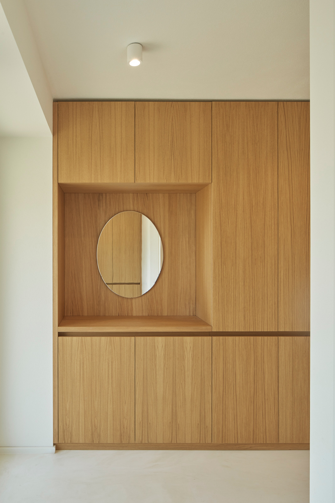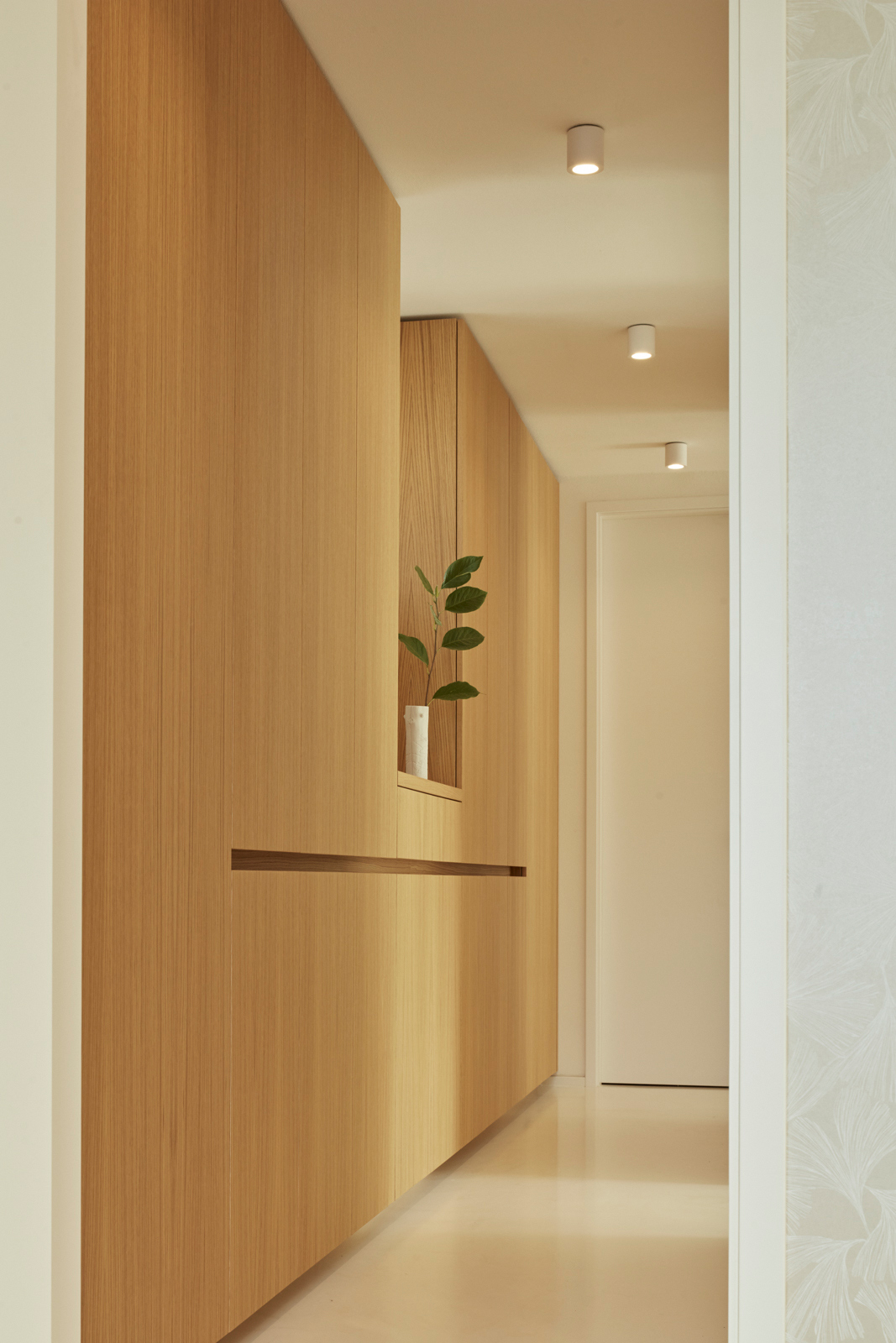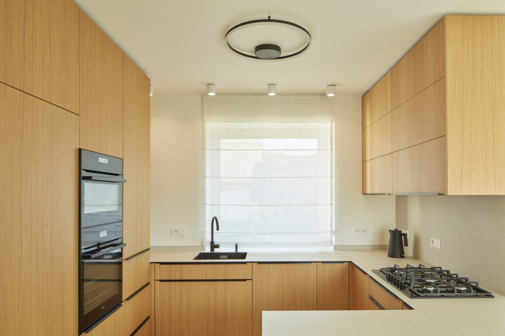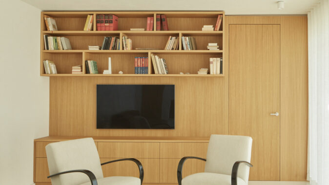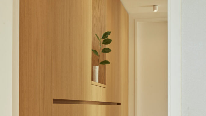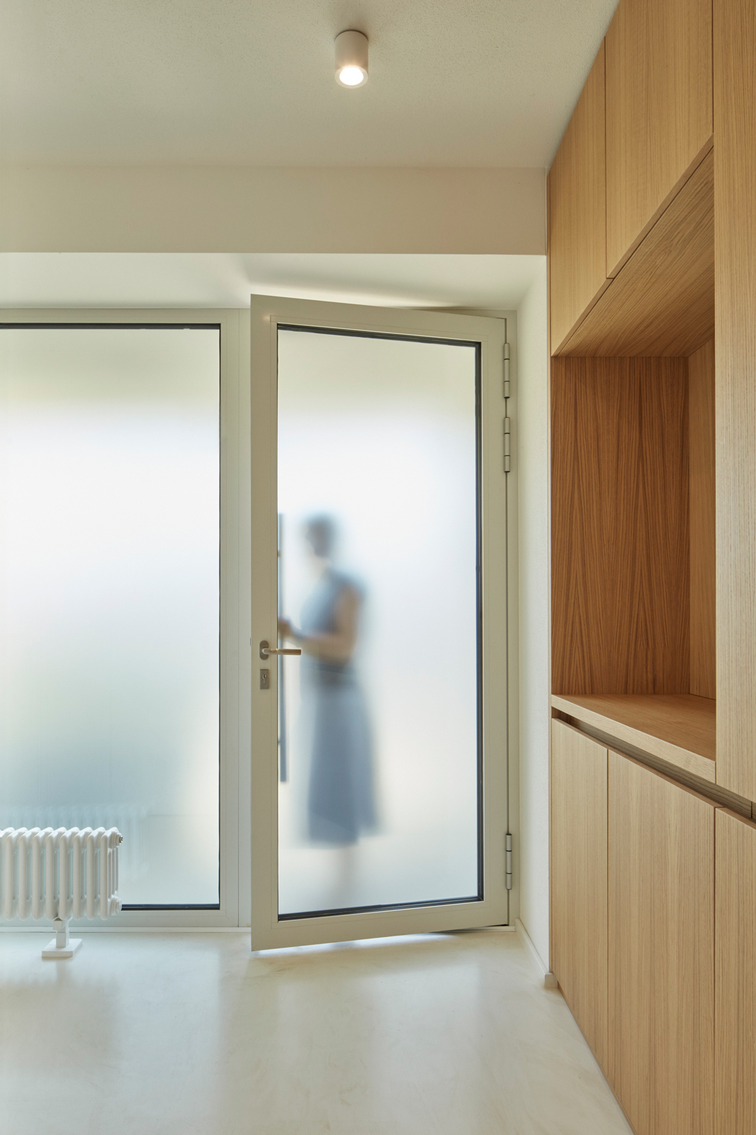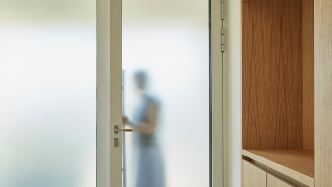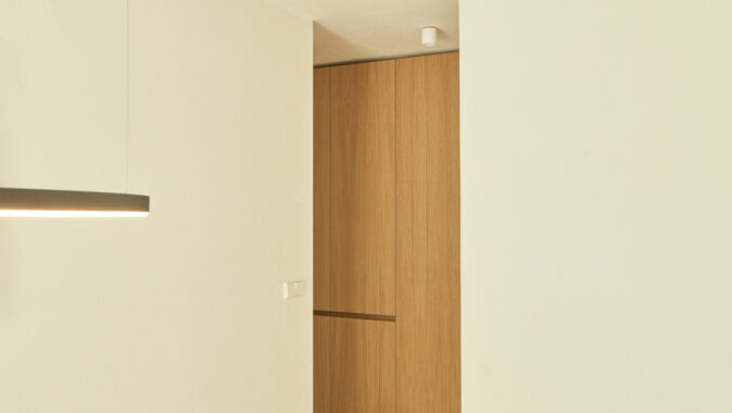 V rámci dispozičních úprav, zahrnujících hlavně propojení obytného prostoru s jídelnou a kuchyní, zvětšení koupelny, vytvoření dvou samostatných dětských pokojů a pracovny, vzniklo komfortní bydlení pro čtyřčlennou rodinu. Okenní otvory orientované do atria byly zbaveny parapetů, v hlavním obytném prostoru vznikl vybouráním pilíře velký okenní otvor šířky 6 m s posuvným křídlem pro maximální propojení interiéru s exteriérem.