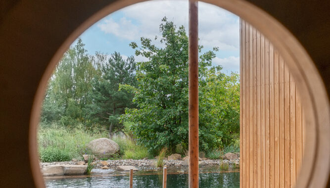 Jednopodlažní rodinný dům s ustoupeným podkrovím z dílny ARCHCON atelieru. Dominantním prvkem jsou jemné organické tvary a přírodní materiály. Hmota domu je sjednocena dřevěnou terasou, která má dvě úrovně a vytváří tak plynulý přechod mezi interiérem a exteriérem. Na meditační část terasy navazuje přírodní jezírko a sauna.
