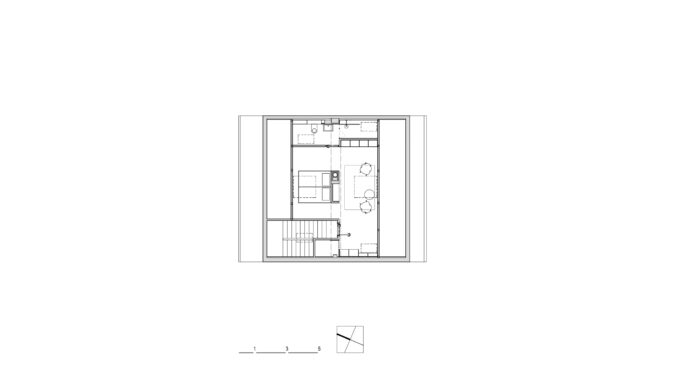 Vnitřní členění domu bylo výrazně upraveno. Vstup na nejnižší úrovni domu byl celkově zvětšen a prosvětlen díky proskleným dveřím, odstranění podhledů a proměně materiálů i barev. V přízemí se v kontaktu se zahradou odehrávají hlavní prostory – obývací pokoj, kuchyň s jídelnou a ložnice s koupelnou. Pro tu se podařilo vyšetřit místo zmenšením průchodu na zahradu a drobnými souvisejícími změnami. V patře se prostory, které dříve sloužily jako dětské pokoje, proměnily v „salón“ pro setkání rodiny při slavnostních příležitostech a současně v domácí kinosál a pokoj pro hosty. Zásadní proměnou prošlo také podkroví, které nyní umožňuje pobyt hostů i po delší dobu při zachování soukromí jak jejich, tak hostitelů.