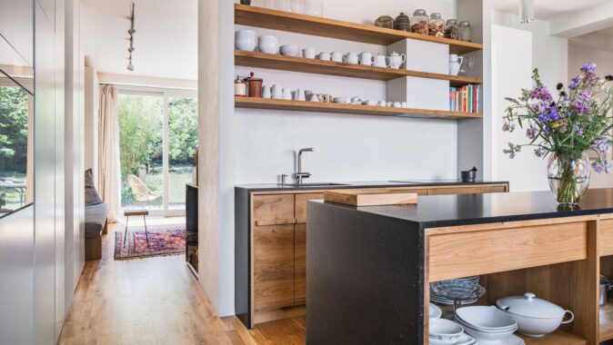 Interiér je především sbírkou věcí shromažďovaných s citem a rozmyslem po celý život. Věcí poutajících investora k lidem a událostem. Spíše než sbírkou předmětů je tak sbírkou lidí skrze předměty. Kamna v obývacím pokoji vytvořil přítel Jürgen Rajh, truhlářské vybavení z masivu vyrobil syn Jakub. Skleněná socha spočívající na kamnech je dílem kamarádky Dany Vachtové. Textilní prvky interiéru ušila investorka z vlny přivezené ze Skotska, světla nad jídelním stolem pořídil investor na dánském bazaru. Betonové dlaždice terasy jsou z betonárny nedaleko Javornické palírny, dalšího investorova „příběhu“. Stejně jako první, i druhá rekonstrukce domu je nepřekvapivě spojena s kamarády architekty. Každý centimetr domu je „pokryt příběhy“, racionálními i impulzivními rozhodnutími, je zrcadlem jeho obyvatel.