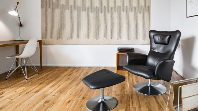 V interiéru jsou ponechány a doplněny některé původní prvky, například pozinkované zábradlí, které propojením na hlavních a vedlejších podestách jednotlivých ramen získalo „neprašovský“ charakter. Renovovány a doplněny byly původní parkety a podlahové „lišty“ z pozinkovaného plechu. Stěny barevně ztlumené do bílé a šedé dávají vyniknout obrazům, část je obložena překližkou v přírodním tónu. Také koupelny byly změněny jak prostorově, tak celkovým laděním. Bílé velkoformátové obklady (3 x 1 m) doplňuje teracová dlažba a truhlářské kusy z dubového masivu. Původní vnitřní dveře s nadsvětlíky prošly renovací, nové jsou provedeny se skrytými zárubněmi.