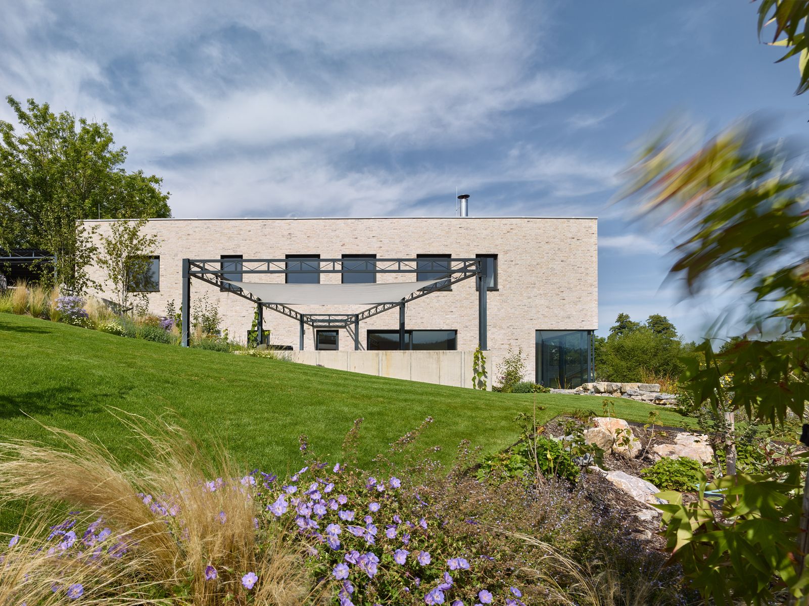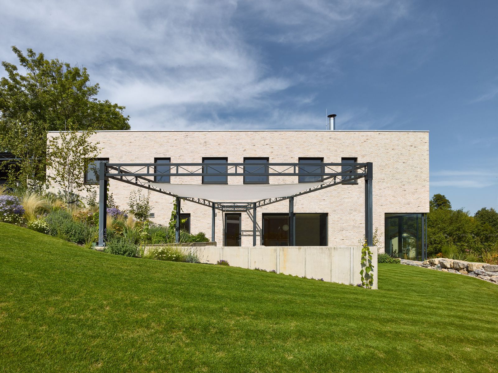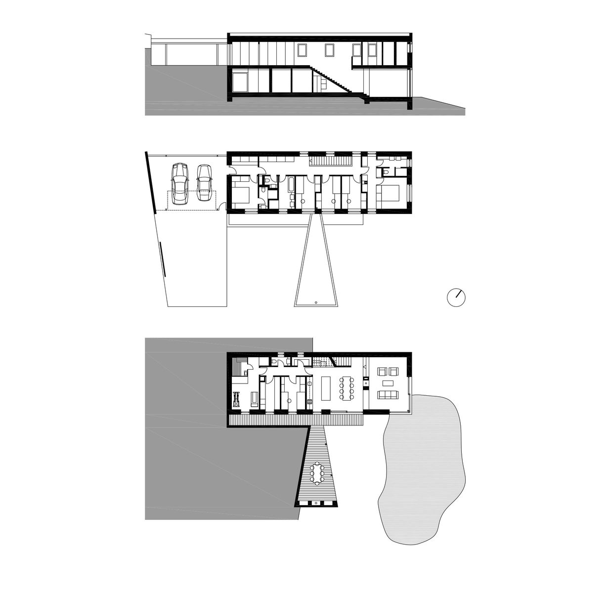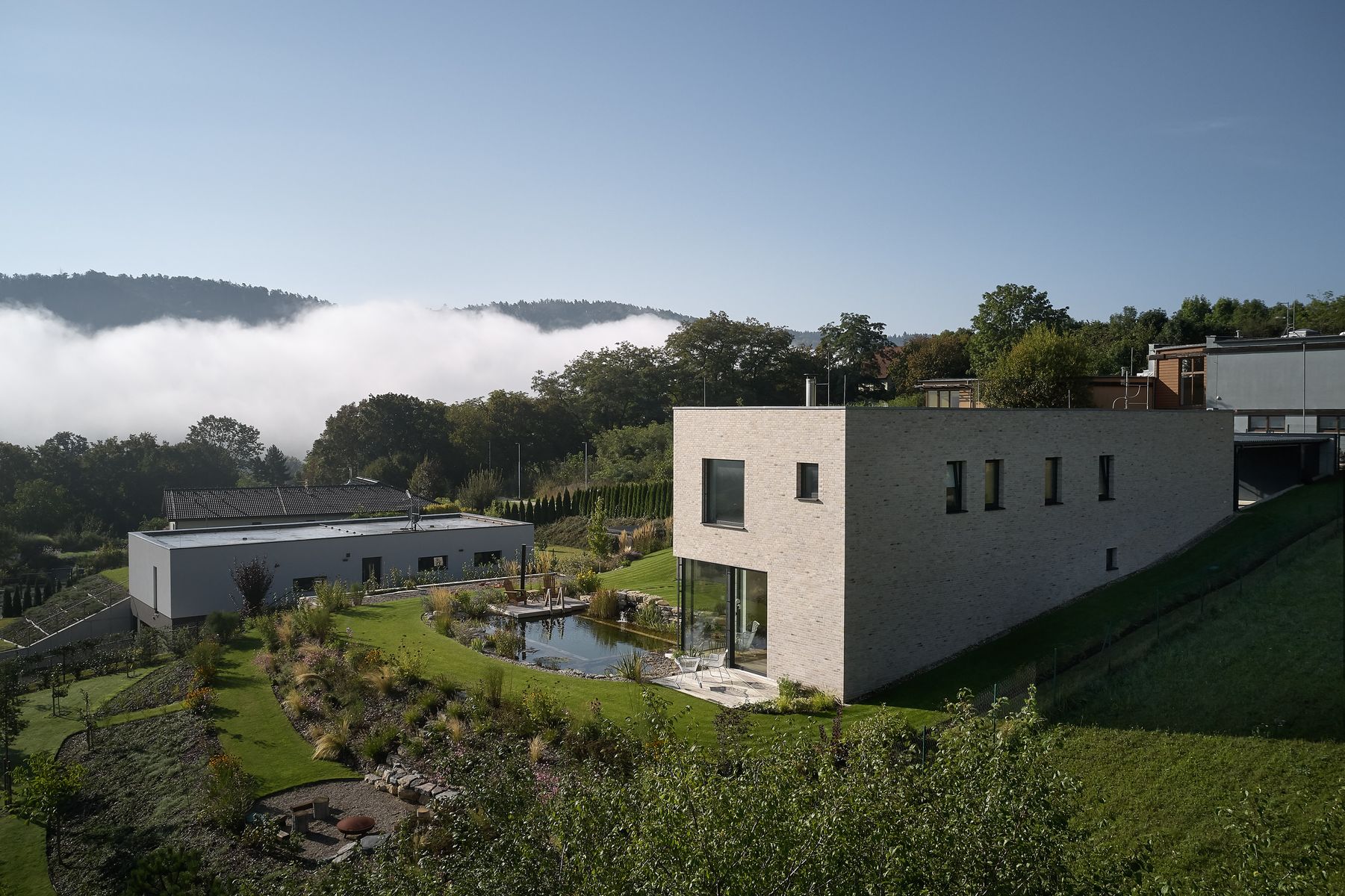 Celkově jsme dům koncipovali jako stavbu, která se nesnaží terén překonávat, ale naopak s ním spolupracuje. Všechny klíčové provozní i tvarové principy domu vycházejí z reakce na lokalitu. Výsledkem je dům, který je pevně zakotvený ve svém prostředí, krajinu nejen rámuje, ale svou dispozicí ji aktivně využívá.
