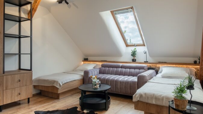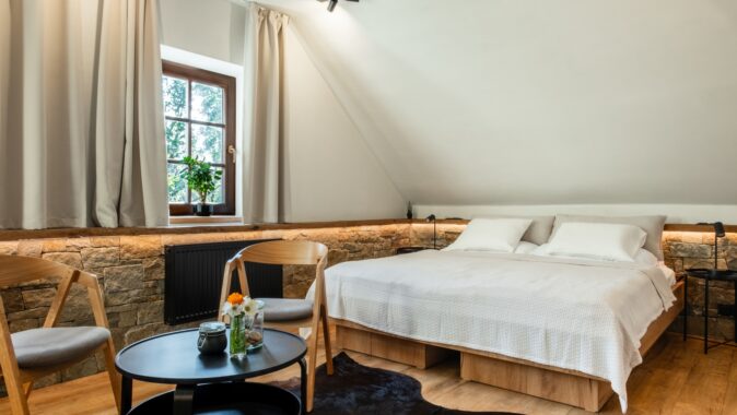 Majitelé dům přetvářeli téměř patnáct let k obrazu svému, a když už měli konečně hotovo, rozhodli se začít nanovo. Již od prvotní myšlenky na rekonstrukci měli jasno v tom, komu její návrh svěří. „Trojanovice již léta vzkvétají pod taktovkou dlouholetého starosty a také architektonického studia Kamil Mrva Architects, takže nebylo o kom jiném přemýšlet,“ vysvětluje majitel. Studio oslovil na přelomu roku 2022 a 2023 s velmi minimalistickým zadáním – architekti se původně měli ujmout pouze dispozic samotných pokojů. Nakonec ale vzájemná spolupráce přerostla v celkovou rekonstrukci objektu. Základním přáním majitelů bylo zachovat domu historického ducha a akcentovat v něm okolní ráz krajiny.