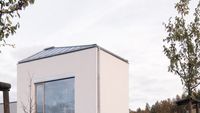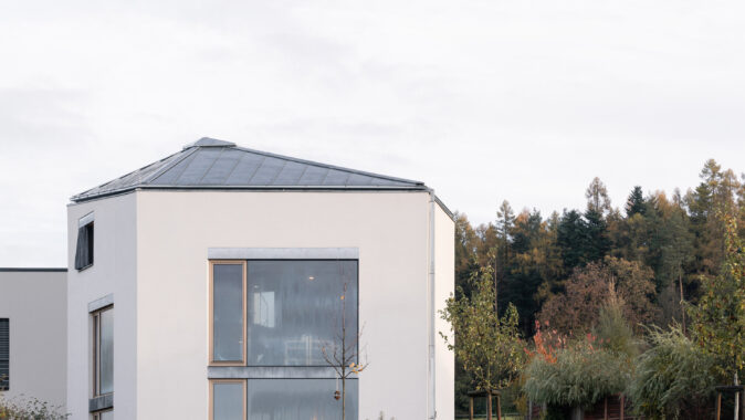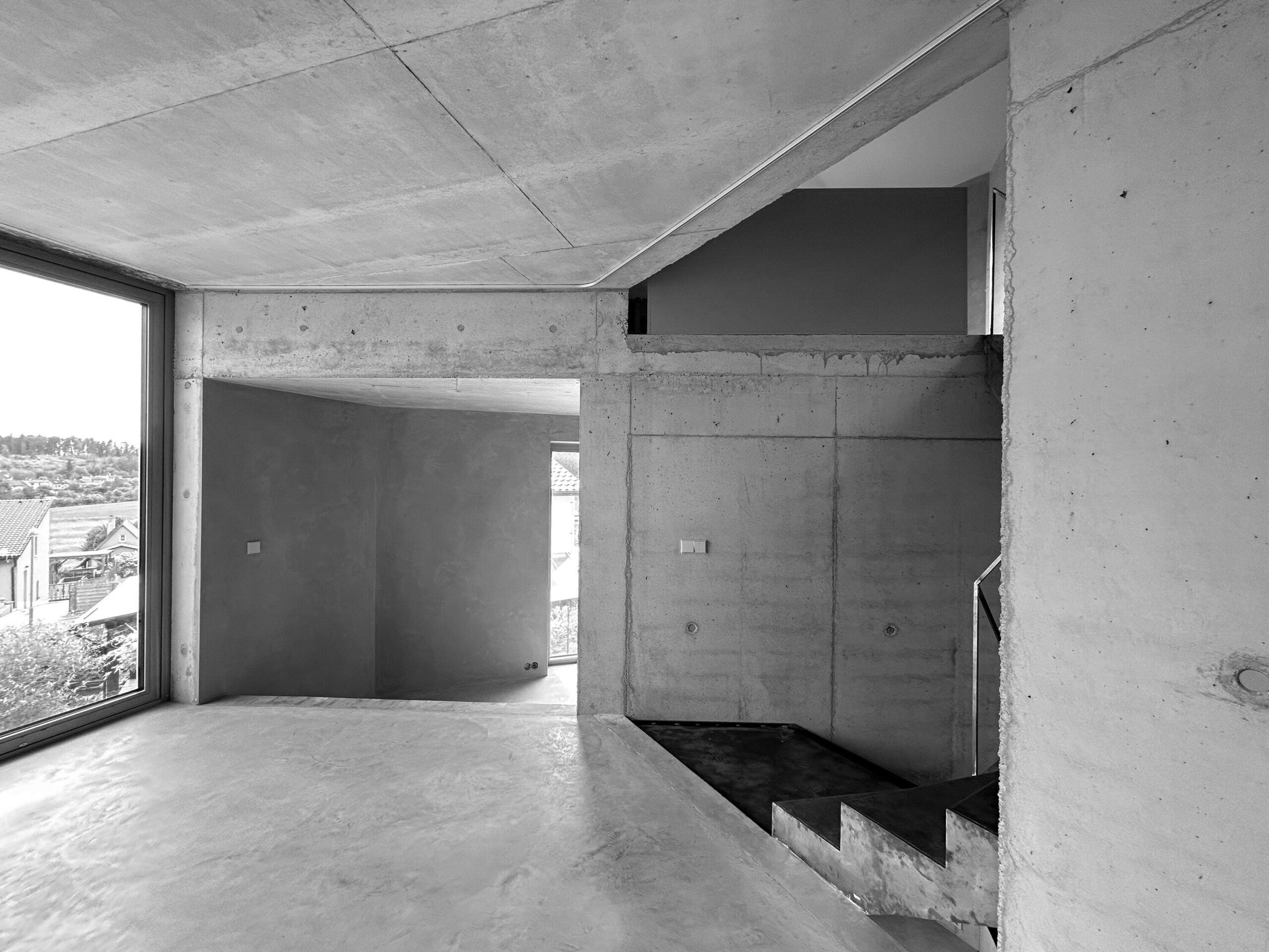 Dům od studia Malý Chmel je koncipován jako vertikální jeskyně světla situovaná ve svažité zahradě. Je tvořen prostory s různým charakterem – velikostí, výškou a denním osvětlením. Jsou mezi sebou propojeny a vytvářejí jeden kontinuální plynoucí prostor.