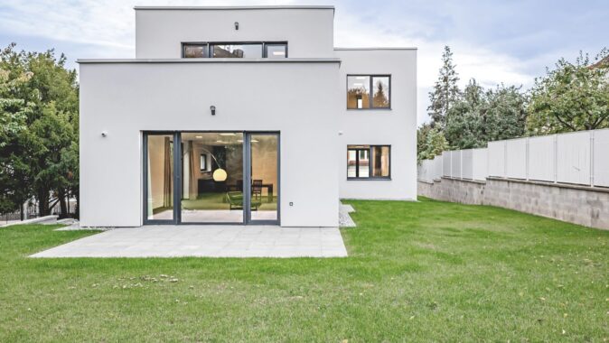Architektura vychází z jednoduchých geometrických forem a důrazu na čisté linie. Fasáda je opatřena bílou omítkou, okna jsou hliníková v tmavě šedé barvě. Zasklené plochy jsou převážně pevné, doplněné o užší otevíravé části sloužící k větrání. Interiér pracuje s vestavným nábytkem, jehož barevné akcenty vytvářejí kontrast k uměřenému, monochromatickému ztvárnění exteriéru. Umístění, tvar, výšky i proporce jsou zachovány dle územního a stavebního povolení z roku 2017.