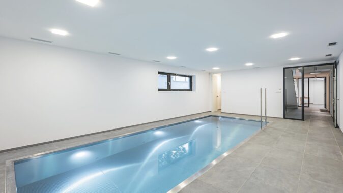 Stavba má dvě nadzemní a jedno podzemní podlaží. Rodinný dům obsahuje dvě samostatné bytové jednotky, každou s vlastním vstupem. V podzemním podlaží se nachází technické zázemí, wellness a posilovna. Úroveň vstupu a garáže navazuje na přilehlou komunikaci. Vnitřní vertikální propojení zajišťuje přímé schodiště opatřené stěrkou a osvětlené světlíkem. V patrech jsou umístěny obývací pokoje, pracovny a ložnice se sociálním zázemím.