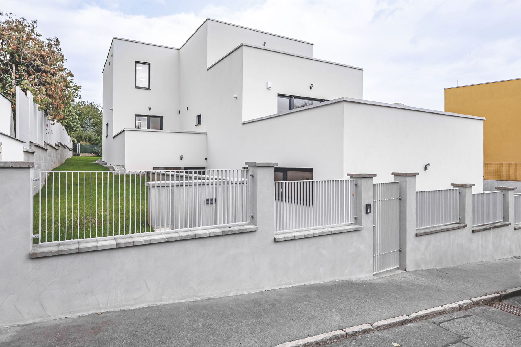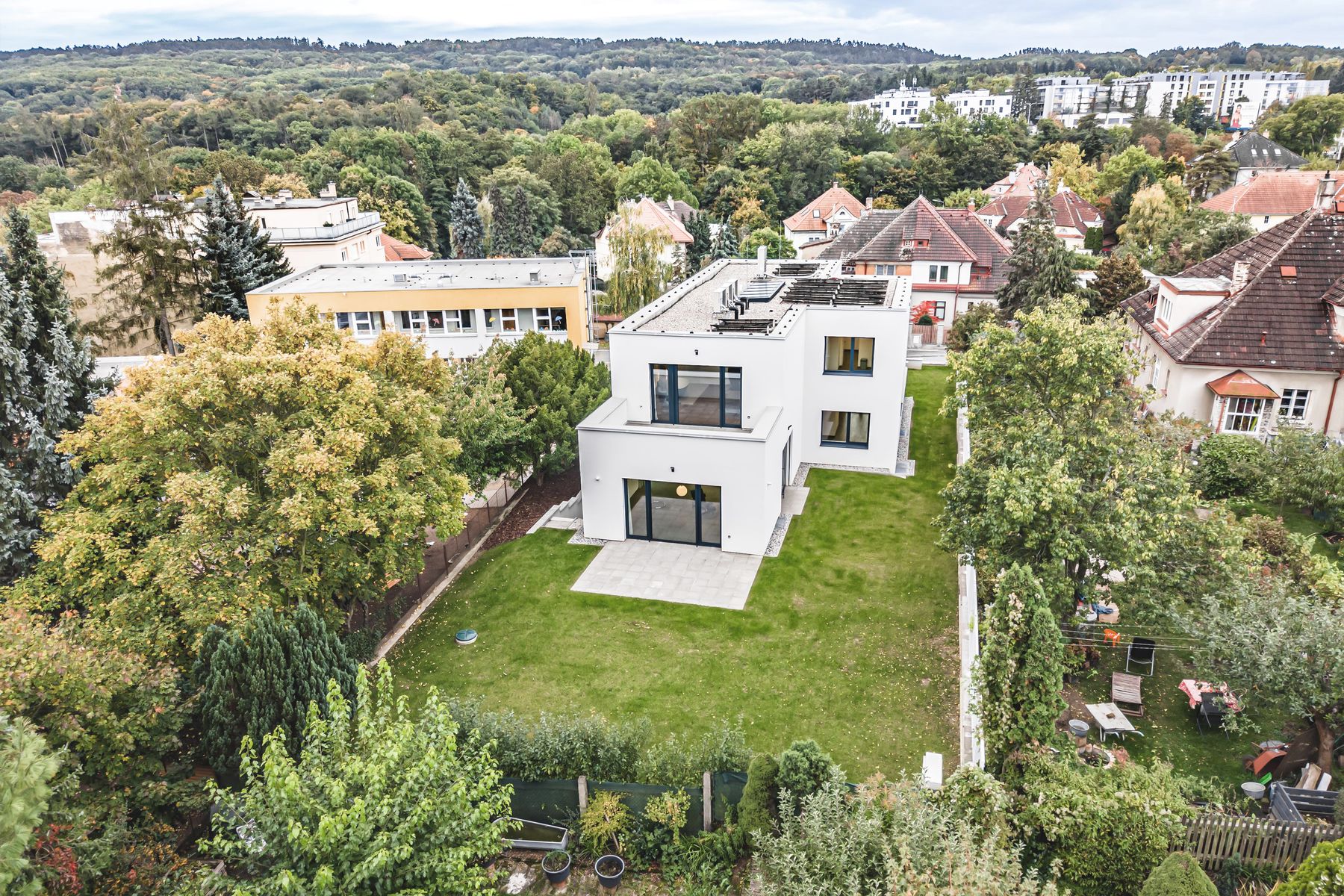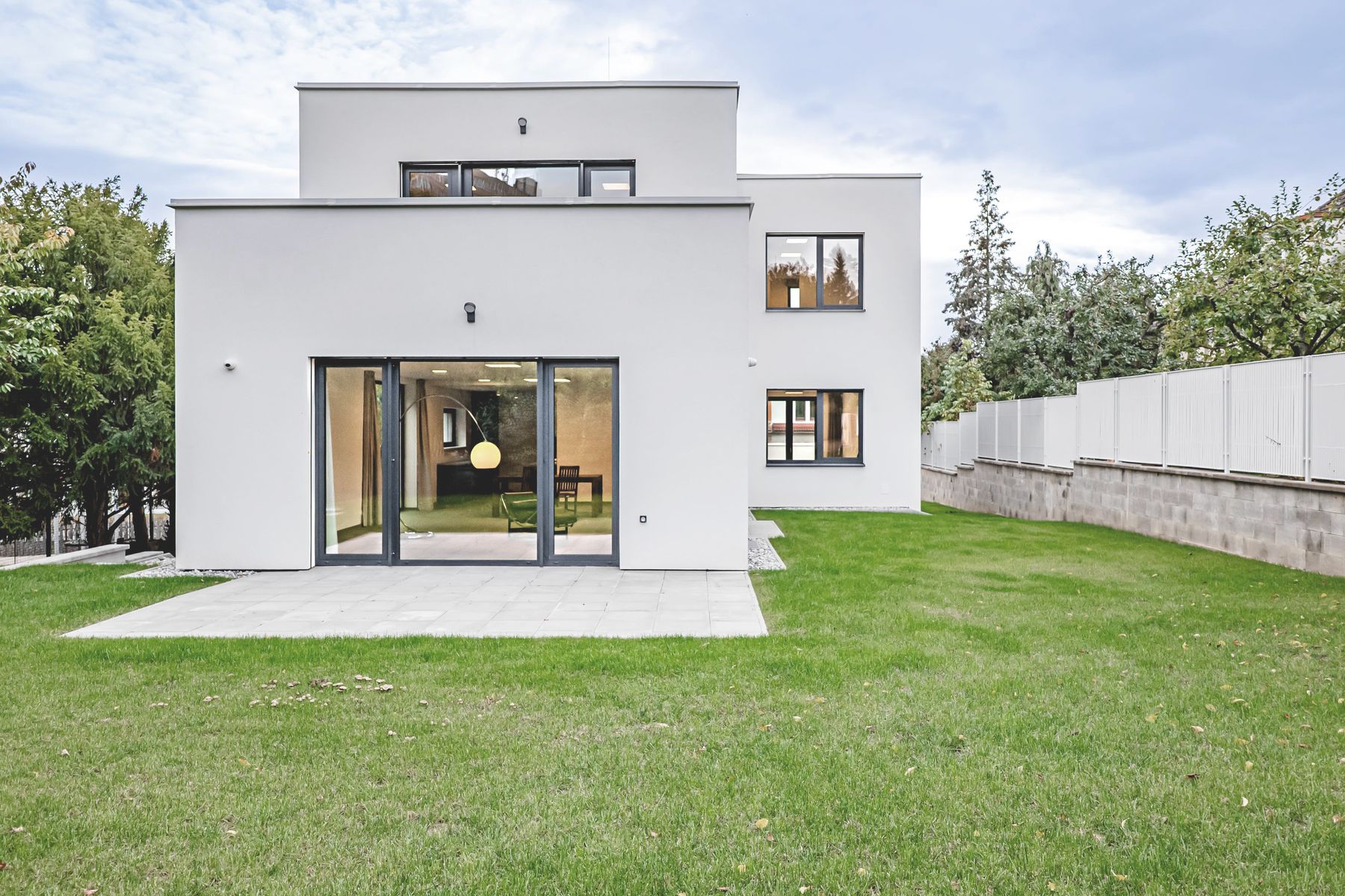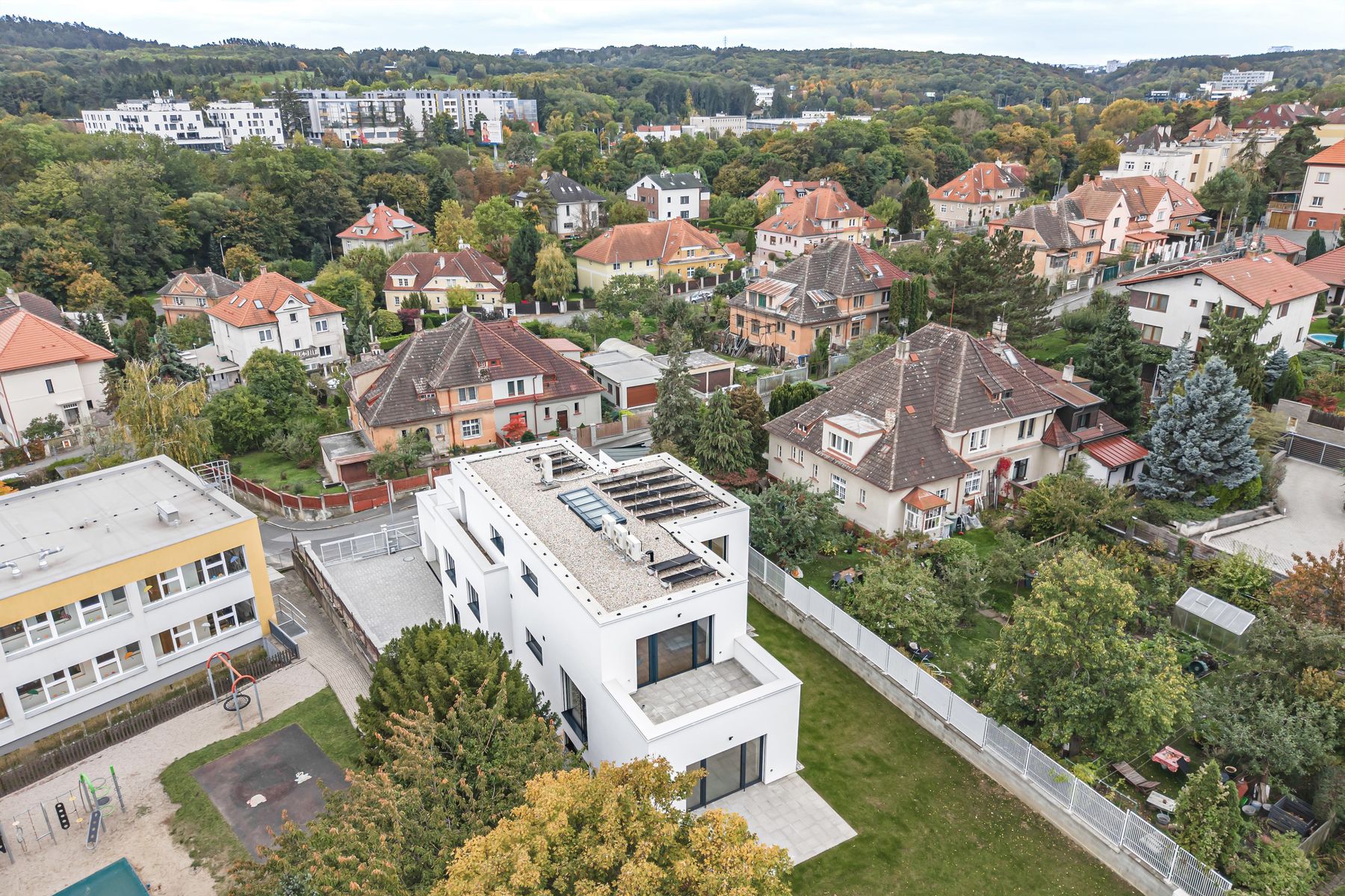 Novostavba leží na svažitém pozemku v Praze 5, na rozhraní mezi vilovými domy, občanskou vybaveností a vícepodlažní bytovou zástavbou. Návrh architektky Štěpánky Hájkové využívá konfiguraci parcely a zajišťuje propojení vnitřních a venkovních prostorů.