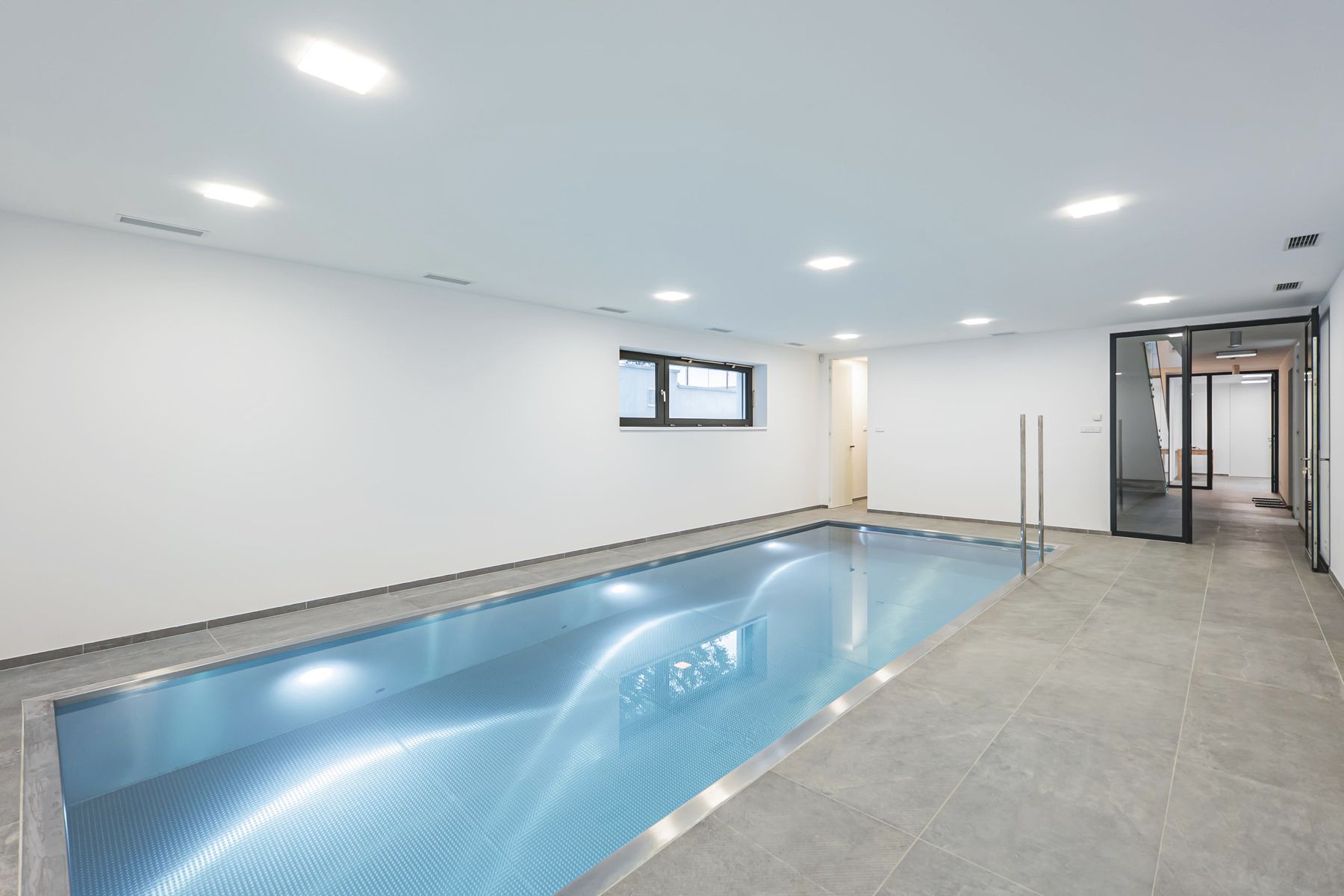 Stavba má dvě nadzemní a jedno podzemní podlaží. Rodinný dům obsahuje dvě samostatné bytové jednotky, každou s vlastním vstupem. V podzemním podlaží se nachází technické zázemí, wellness a posilovna. Úroveň vstupu a garáže navazuje na přilehlou komunikaci. Vnitřní vertikální propojení zajišťuje přímé schodiště opatřené stěrkou a osvětlené světlíkem. V patrech jsou umístěny obývací pokoje, pracovny a ložnice se sociálním zázemím.