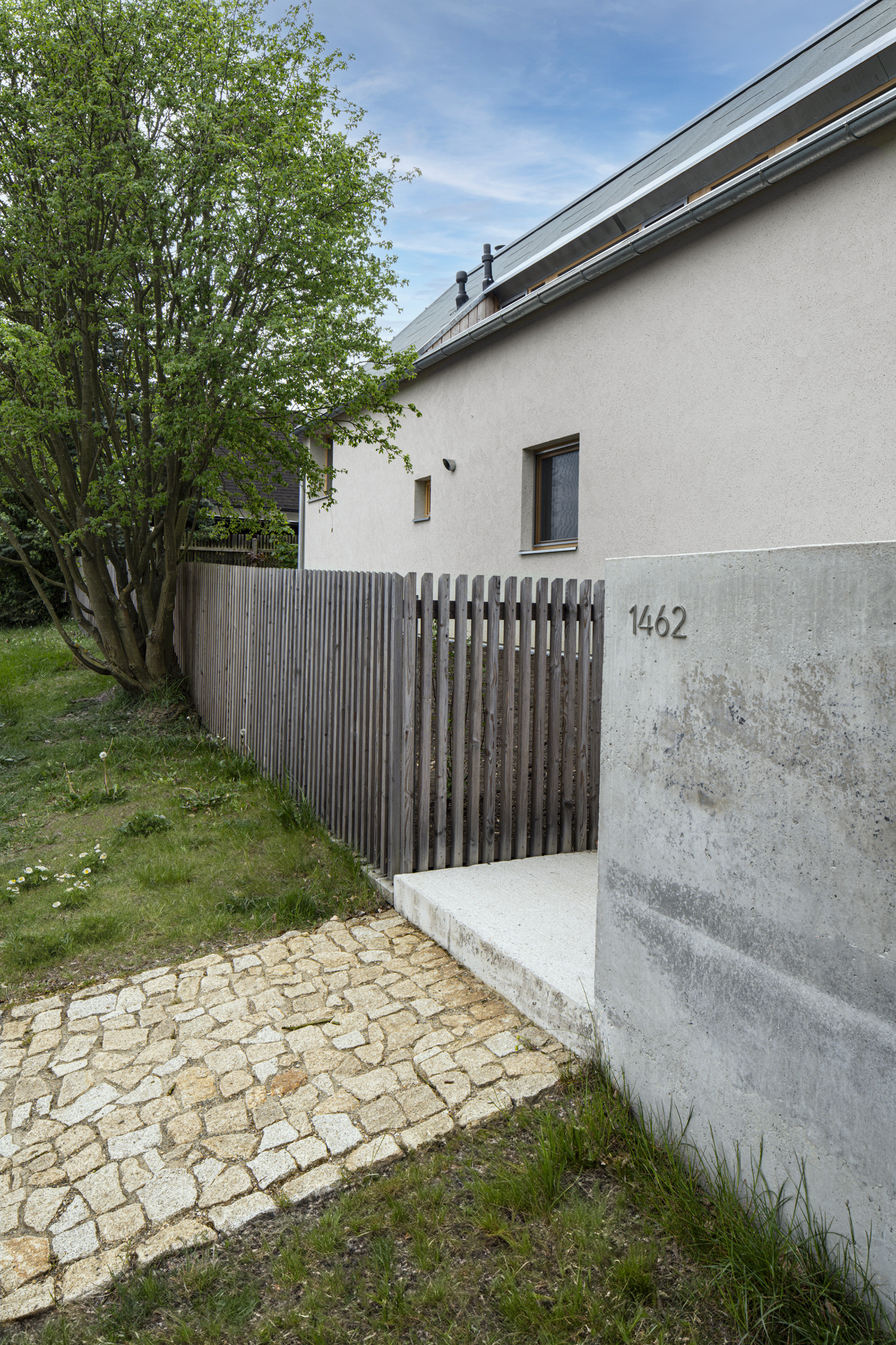 Tradiční venkovský dvoupodlažní rodinný dům od studia holiš + šochová architekti stojí v Nouzově u Prahy, na mírně svažitém pozemku na okraji klidné zástavby původních chat, víkendových vilek a rodinných domů.