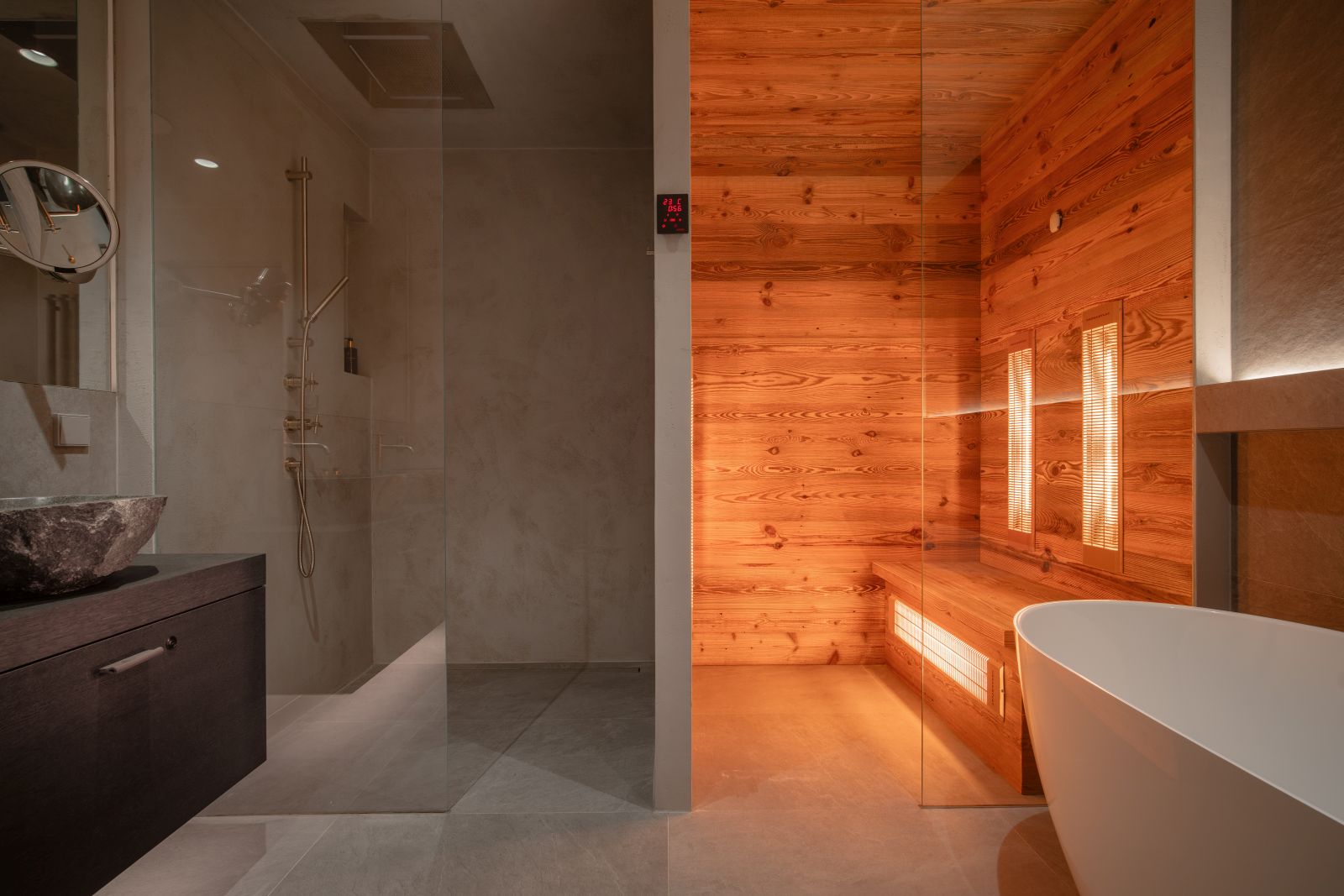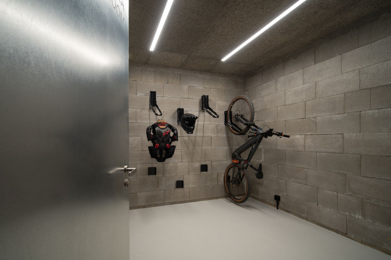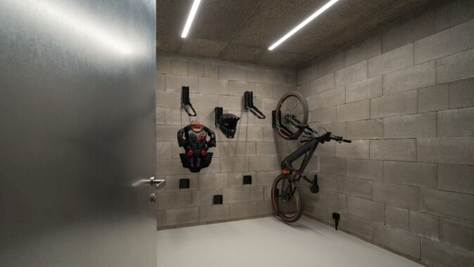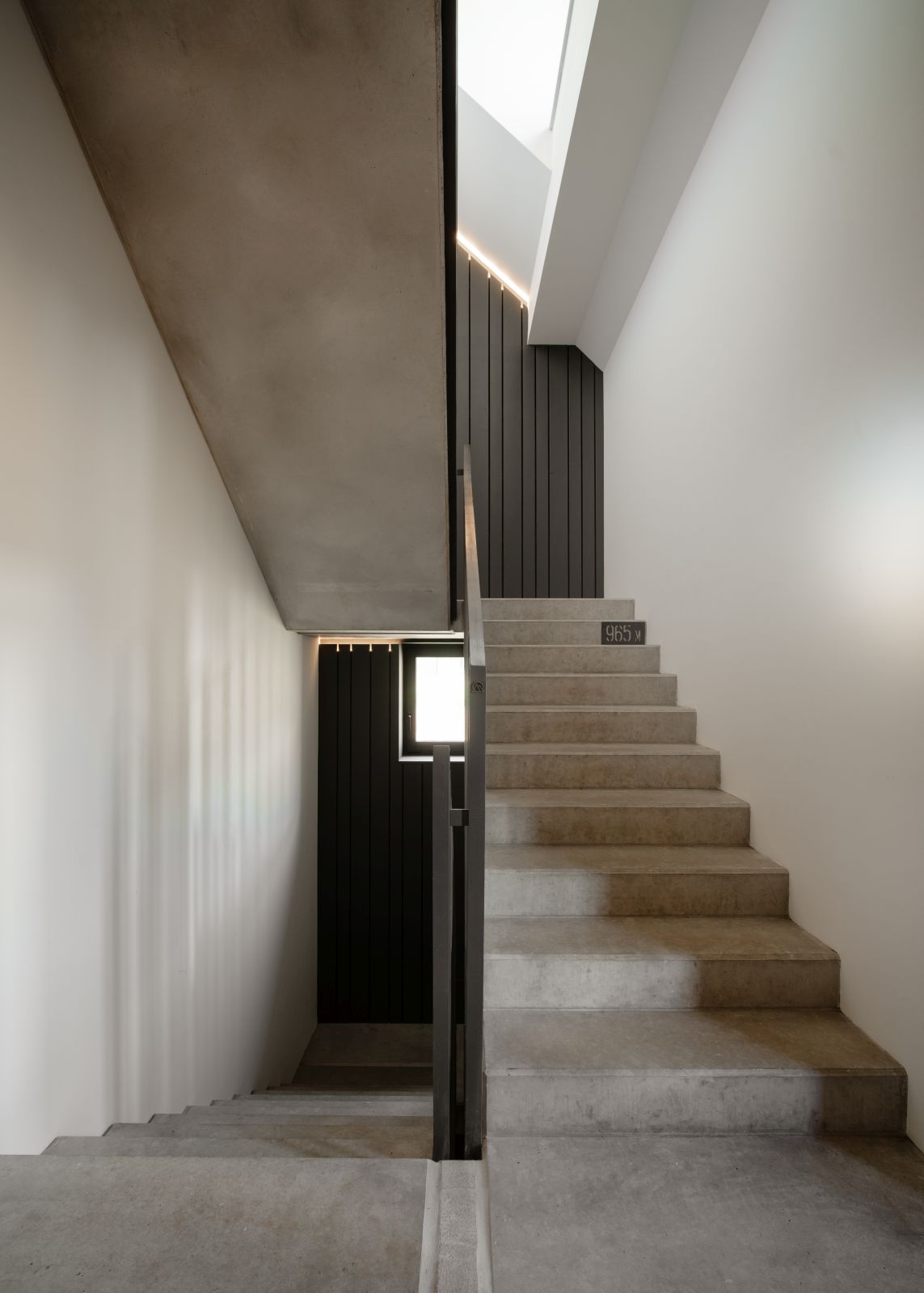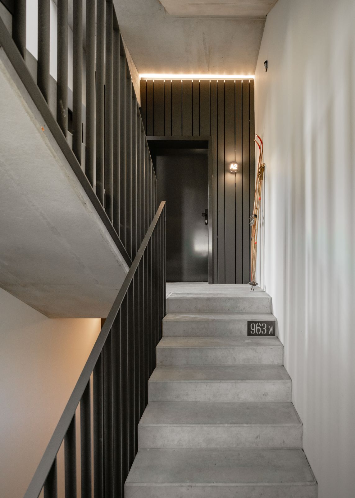 Jednotlivá patra domů propojuje schodiště ozvláštněné netradičním detailem, znázorňujícím nadmořskou výšku, ve které se člověk zrovna nachází. Dům je dále vybaven podlahovým vytápěním ve všech obytných podlažích, které zajišťuje rovnoměrnou tepelnou pohodu bez vizuálního zatížení prostoru. Interiéry vycházejí z jednotného koncepčního stylu, existují mezi nimi však jemné nuance, které jim dodávají osobitost.
