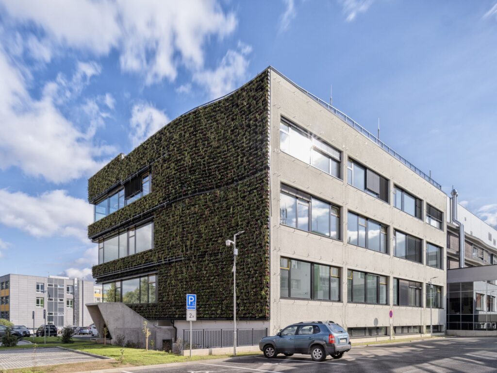 Novostavba budovy České zemědělské univerzity v Praze-Suchdole z roku 2023 Praha od studia Origon na své zaměření na první pohled odkazuje výraznou zelenou fasádou. Poskytuje klid na výzkum a studium a podílí se na inspirativním kontextu.