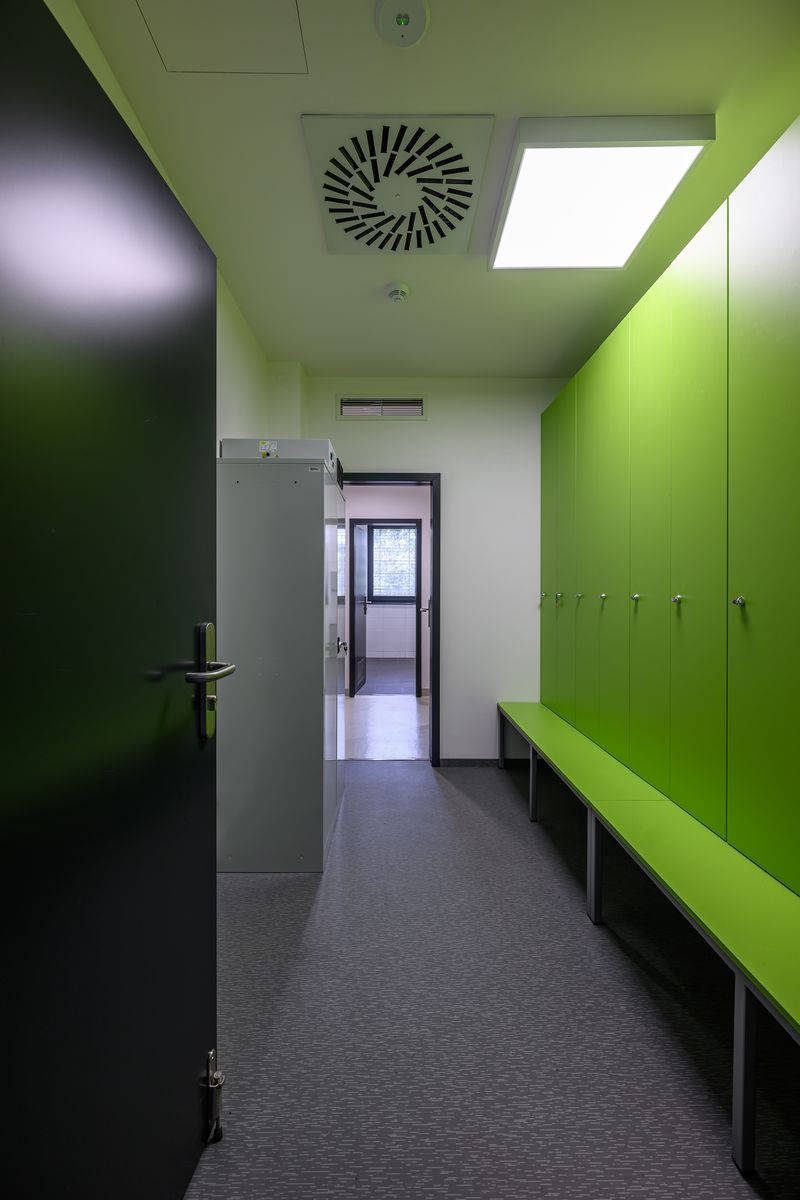 Na střechách jsou umístěny fotovoltaické panely pro ohřev teplé vody nebo dodávání energie do sítě. Umělé osvětlení zajišťují úsporné LED zdroje. Dešťová kanalizace je dvojí – voda ze střech je sváděna do akumulační nádrže a slouží pro doplňování vody v jezírku, dešťové vody z komunikace a zpevněných ploch jsou vsakovány. Splaškové odpadní vody jsou odváděny kanalizací na městskou čistírnu odpadních vod.