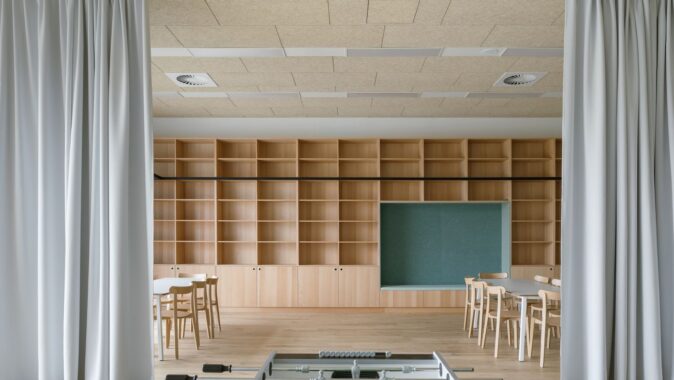Nová škola v Chýni podle návrhu studia OVA vychází ze současného přístupu k výuce, který klade důraz na rozmanité formy učení i kvalitu prostředí. Společné prostory, vnitřní i vnější, mají při vzdělávání stejně významnou roli jako tradiční učebny.