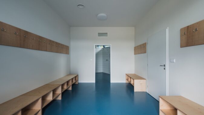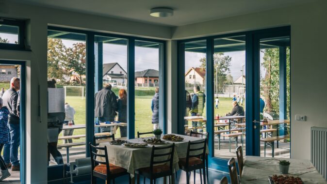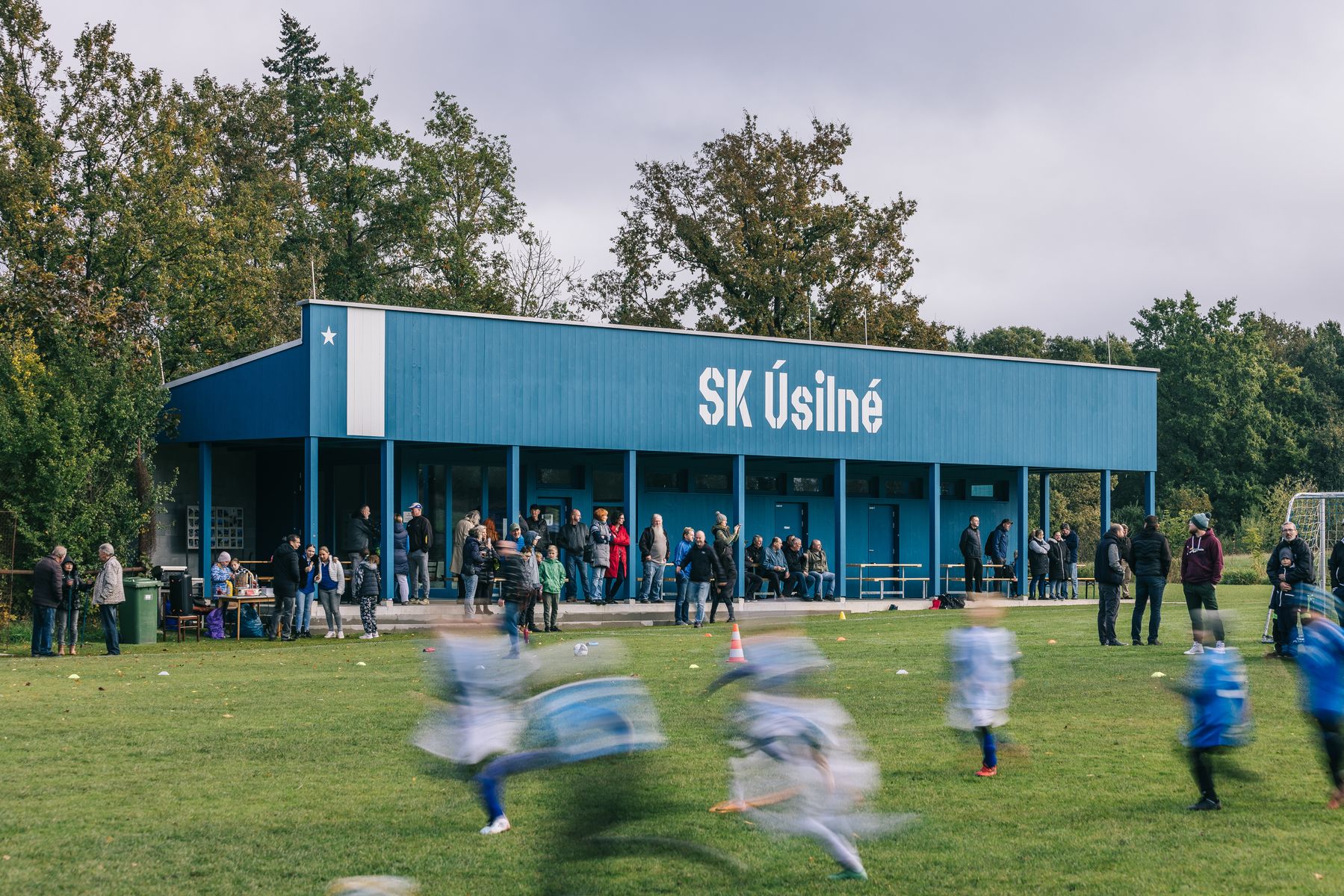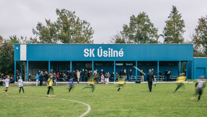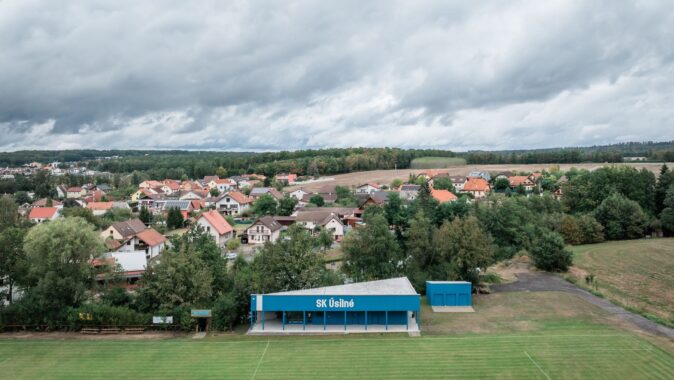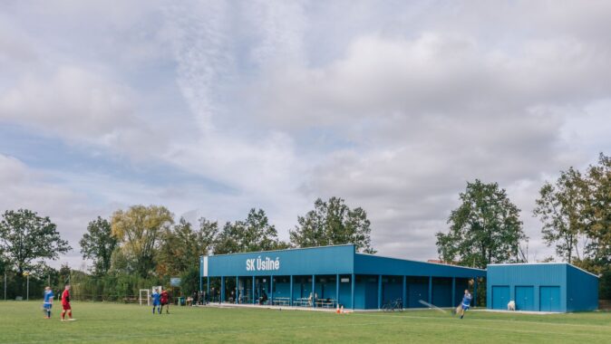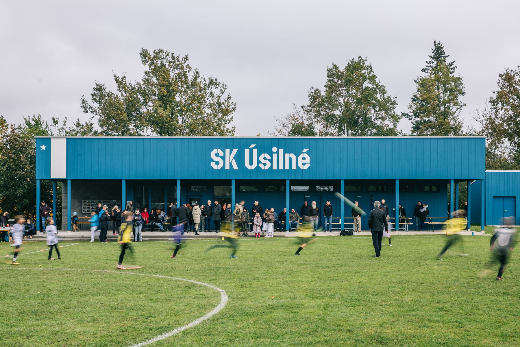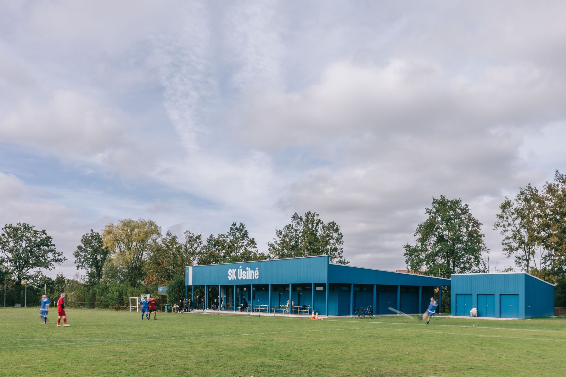 Kabiny fotbalového klubu Úsilné podle návrhu re:architekti jsou vedle komunitního centra a víceúčelového hřiště třetí z dřevěných staveb v jihočeské obci, které tvoří jeho společenské a sportovní zázemí.