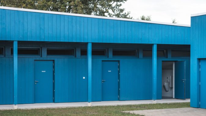 Všechny stavby vznikly na základě architektonické koncepce obce, kterou re:architekti zpracovali v roce 2012. Kabiny jsou umístěny na trojúhelníkovém pozemku mezi rybníkem, hřištěm a polem na východě.