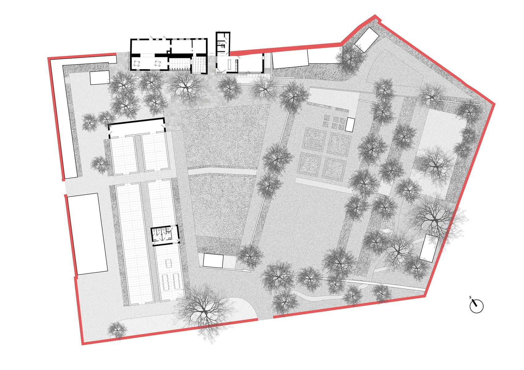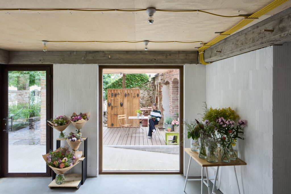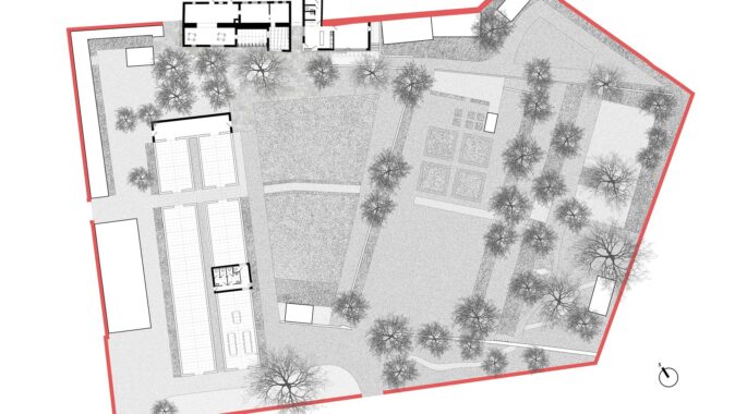 Klíčovým architektonickým zásahem se stalo nové zpřístupnění areálu prostřednictvím betonové rampy, která prochází původním blokem skleníků a hospodářských objektů. Součástí obnovy je také nové zázemí zahrady zahrnující květinářství a ateliér, citlivě začleněné do historické struktury areálu. Novostavba pracuje s jednoduchou materialitou, vegetační střechou a důsledným propojením s původní barokní zdí.