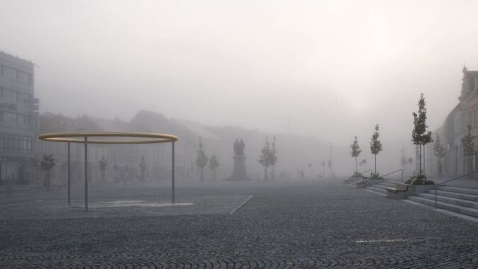 Na náměstí se navrátily původní výtvarné prvky, například kašny v podélné ose, pomník Cyrila a Metoděje byl plně rehabilitován. Nové kašny navazují svým umístěním na původní kompozici barokních kašen. V západní části náměstí je kašna – zlatý prstenec od ateliéru H3T architekti jako výsledek veřejné soutěže. Ve východní části se nachází kašna, která je součástí našeho projektu. Ve vazbě na kamenné lavice je v liniových vyrovnávacích stupních 12 bronzových desek zapuštěných do úrovně dlažby. Desky obsahují reliéfní, typograficky pojednaný text připomínající důležité mezníky v historii města.