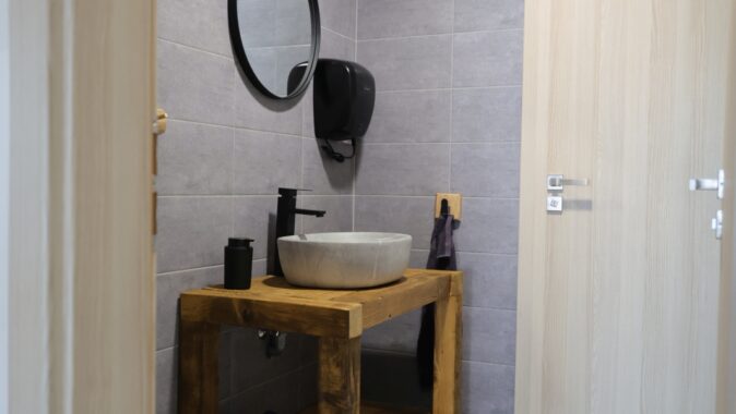 • fasáda provětrávaná dřevěná ze sušených modřínových profilů, soklová a sklepní část obložená kamenným obkladem