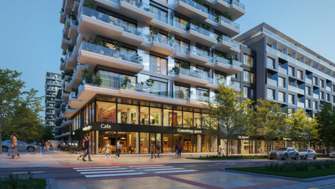 Dominantní rozvlněná věž v centru lokality je řešena jako eco‑smart stavba. V balkonech věže bude integrována zeleň s automatickým zavlažováním, která bude vytvářet unikátní „vertikální zahradu“. Kromě výškově dominantní bílé věže s 25 podlažími zde vzniknou ještě další nižší rezidenční stavby s čistou designovou architekturou, které dominují bílé, stříbrné a šedé barvy doplněné rozsáhlou zelení.