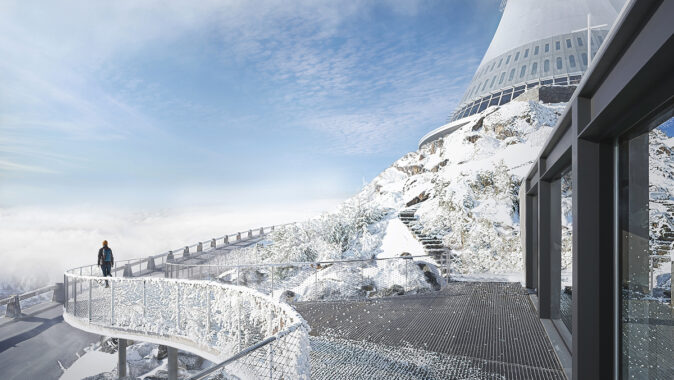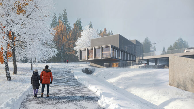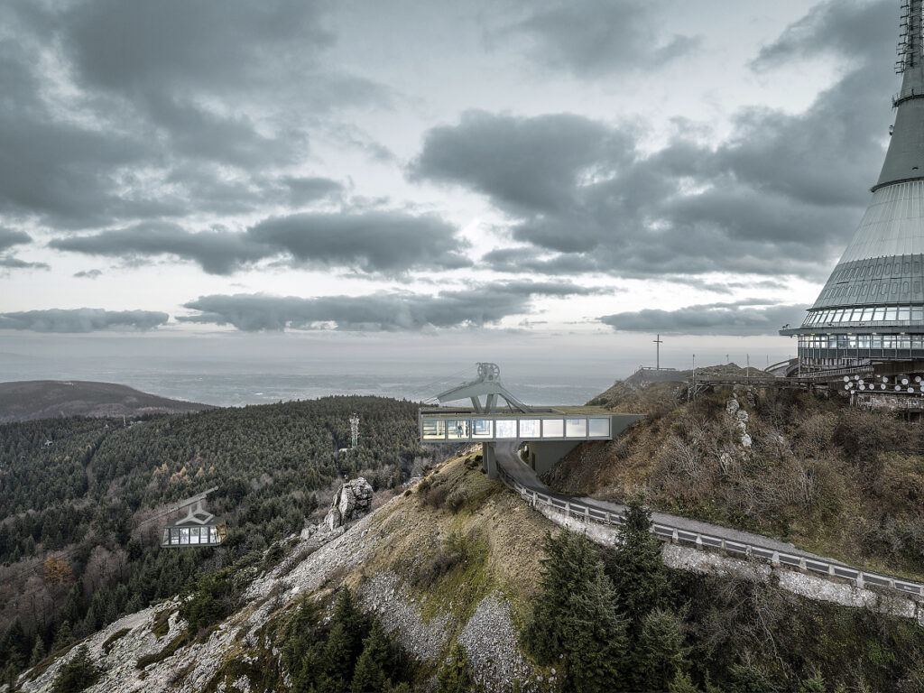 Obnova lanové dráhy na Ještěd podle návrhu studia SIAL architekti a inženýři přináší nové stanice a technické zázemí navržené jako minimální zásahy do horské krajiny, které mají vrcholu vrátit prostorovou čitelnost a důstojný vztah k ikonickému hotelu a vysílači Karla Hubáčka.