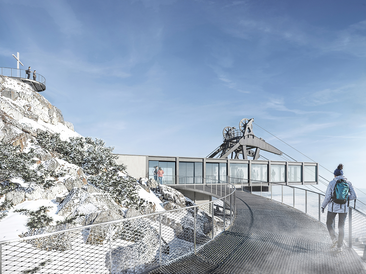 Horní stanice pracuje s minimálním rozsahem provozních prostor a přiznanou technologií lanové dráhy. Návrh současně řeší nutné provozní požadavky, zejména zajištění přístupu požární techniky k hotelu a vysílači, což vyžaduje úpravy stávající komunikace s nedostatečnými parametry. Výsledkem má být výrazně menší a vizuálně lehčí stavba, která uvolňuje pohledy na samotný vrchol a omezuje dosavadní technickou dominanci stanice.