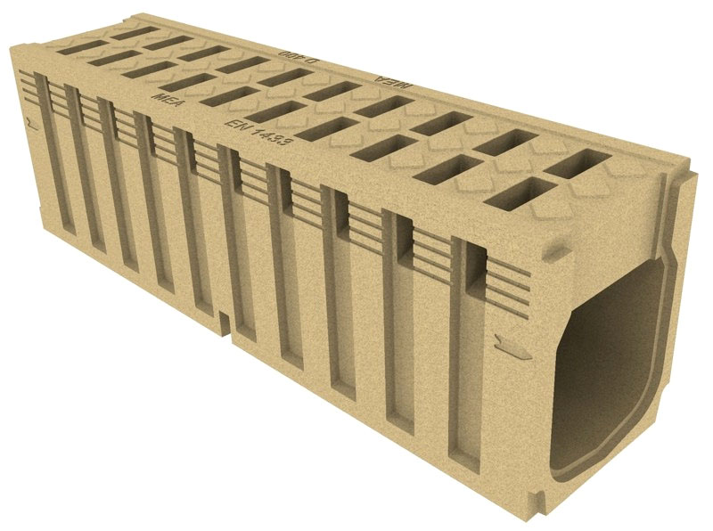 Prvek tělesa DM z polymerického betonu je jednodílný, bez roštu, úzkých podélných štěrbin a velkých odtokových děr, proto je pro cyklisty zcela bezpečný. Nehrozí jejich pád způsobený podélnými štěrbinami, jako tomu bývá u jiných odvodňovacích systémů. Ve městech a občanské zástavbě je u žlabů oceňován nejen jejich bezúdržbový provoz, ale i nulový hluk při jejich přejezdu.