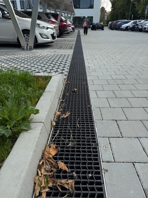 SMC kompozit současně umožňuje použití žlabů i tam, kde se pokládá asfalt. To běžné plastové žlaby často neumožňují.
