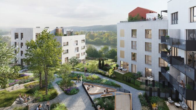V Praze vzniká na brownfieldu v Modřanech první modrozelená čtvrť s mimořádně hospodárným bydlením v evropském kontextu. Developer Skanska buduje nový typ bydlení s důrazem na modrozelenou infrastrukturu, recyklaci šedé vody, vlastní solární panely, zelené střechy a celé spektrum dalších technologií.