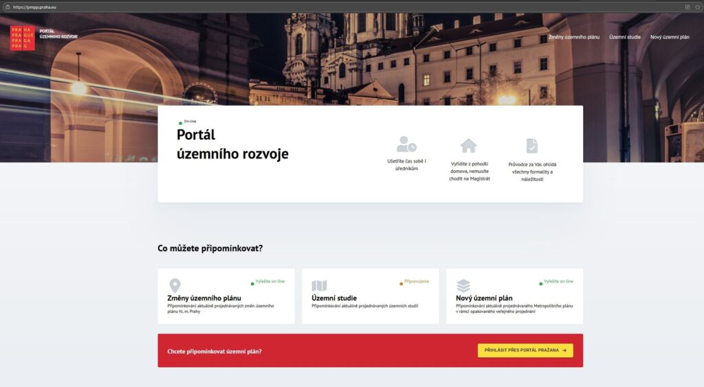 Připomínkování Připomínky a námitky se podávají online v digitální podobě pomocí Portálu Pražana a Portálu územního rozvoje. Je to nejen komfortnější, ale zároveň tak lidé předejdou možným chybám, které by mohly jejich podněty znehodnotit. Použití tohoto způsobu napomůže připomínkujícím splnit všechny zákonem požadované požadavky, a to formou intuitivního průvodce. Podání touto formou bude odesláno zákonným způsobem přímo do elektronické podatelny Magistrátu hl. m. Prahy. Připomínkující obdrží potvrzení o provedeném digitálním úkonu či doručenku do vlastní datové schránky.